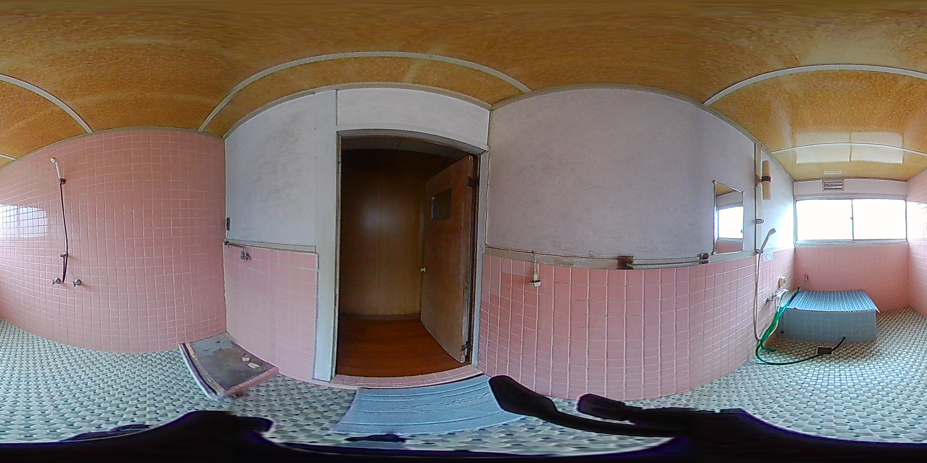 浴室は広めの造り。脱衣所がないので、リフォームで浴室内に脱衣所を設けても良さそうです。