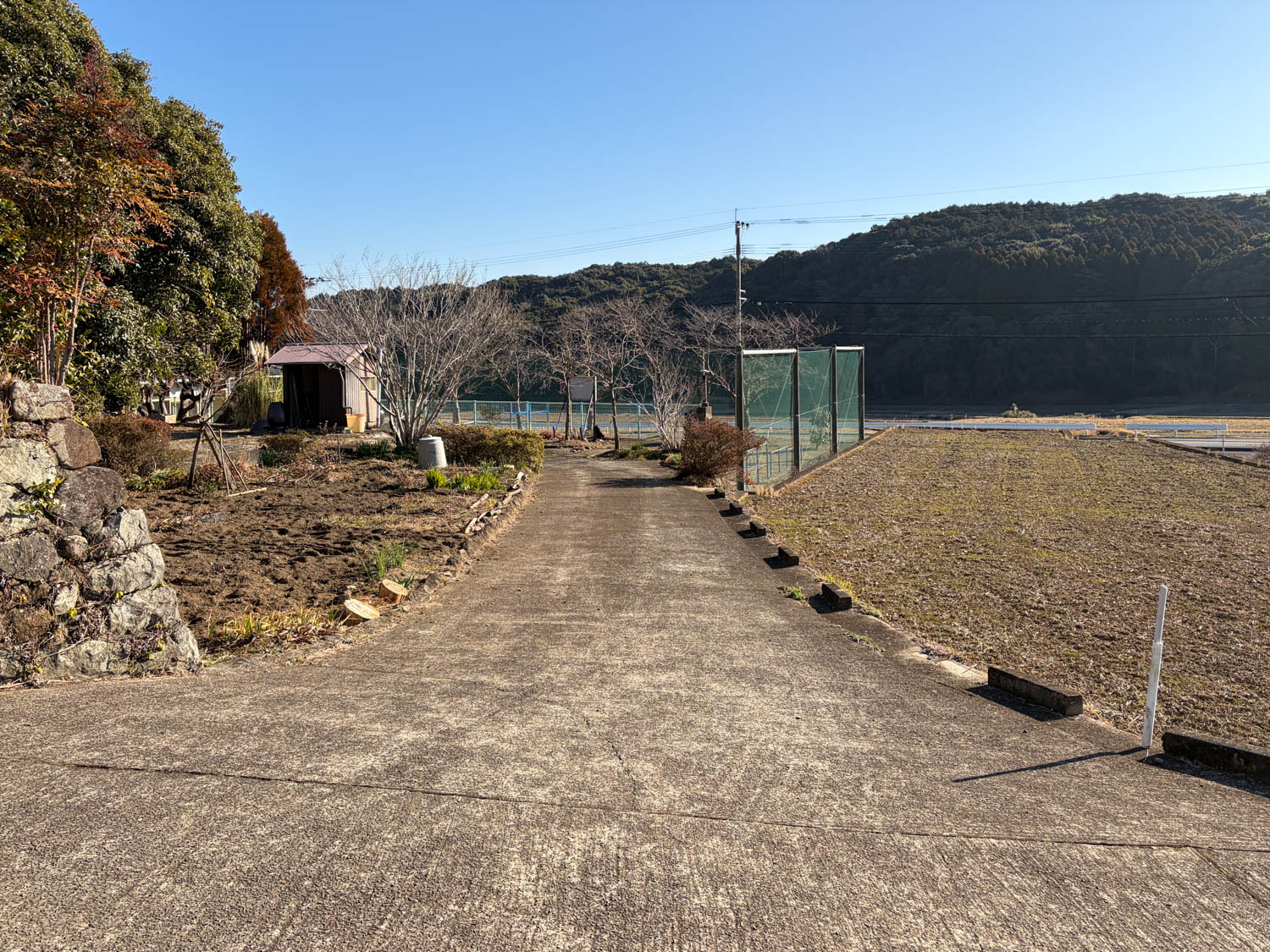 敷地に向かう途中には、付属する畑があります。畑の前の道路幅員は3.4mほどありました。