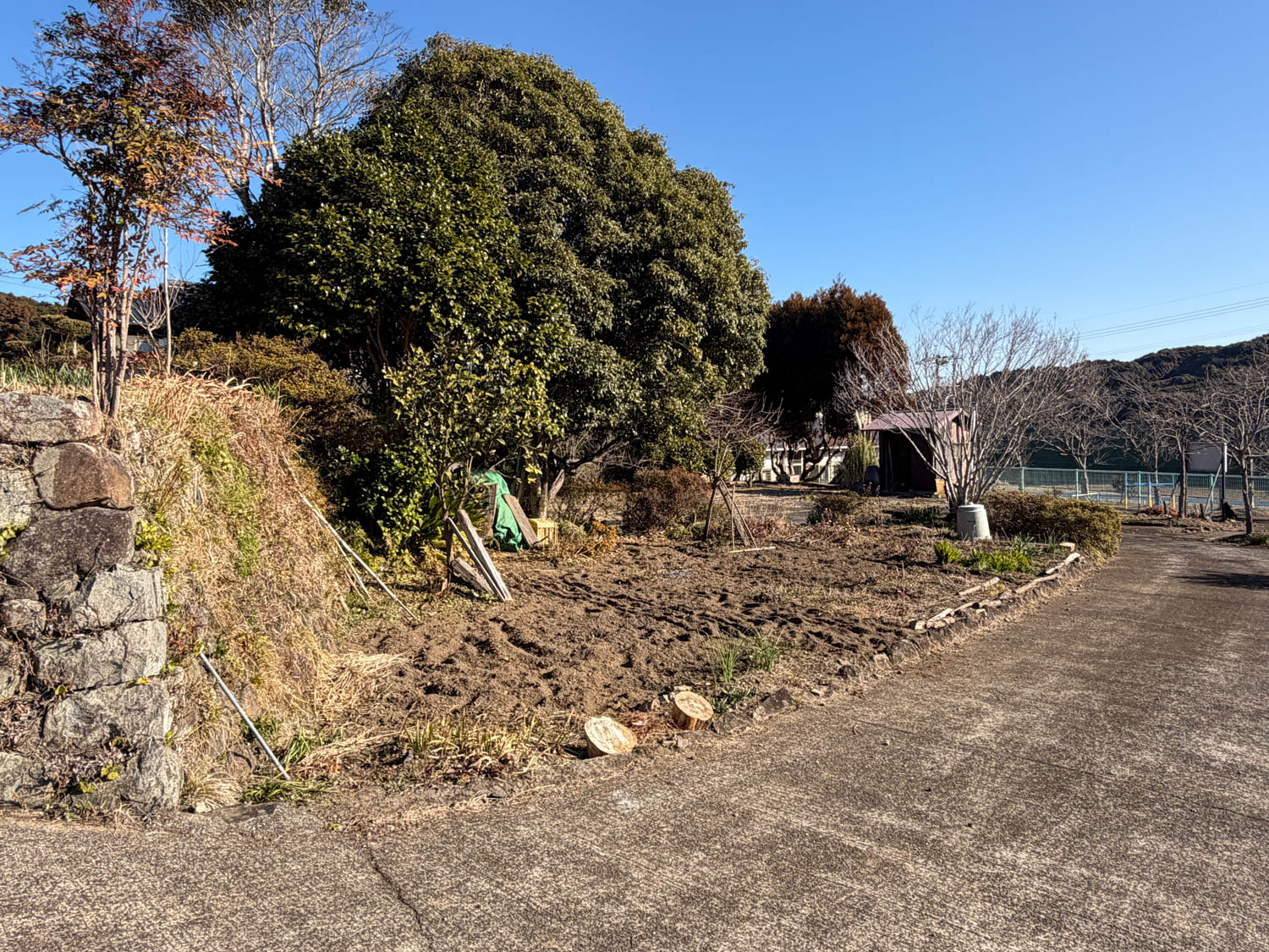 以前は大きな木がありましたが、根本から伐採されていました。奥まで見通しが良くなっています。