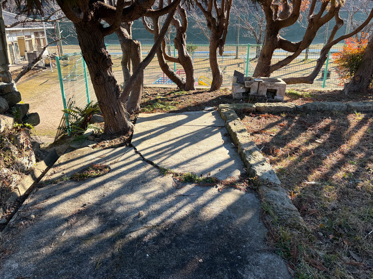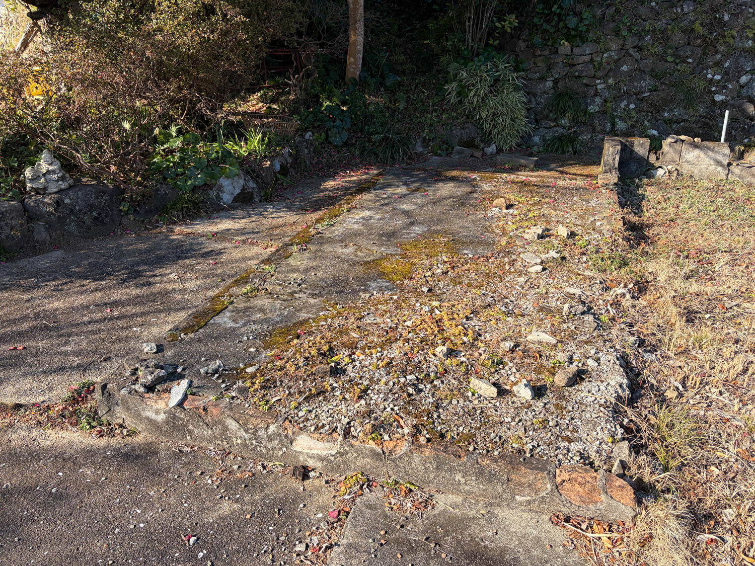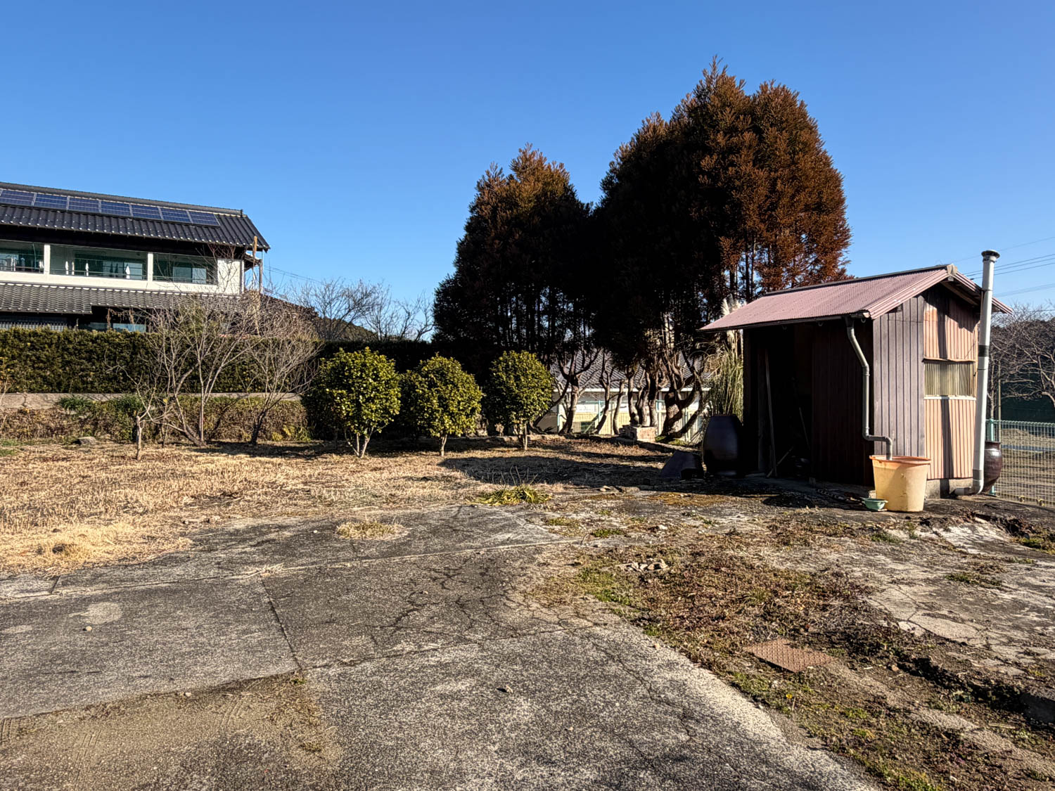 こちらは敷地の様子。手前半分はコンクリート敷き、奥の半分は草が生えています。