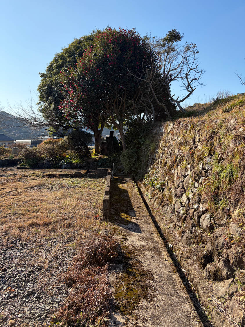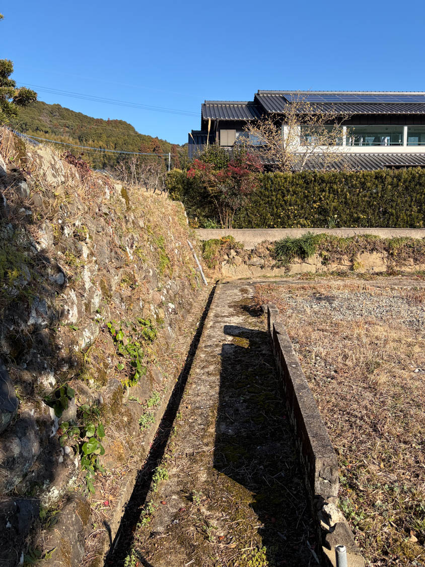 石積みの下には、側溝が設けられています。近くには、以前使用されていた便槽も埋設されているようです。