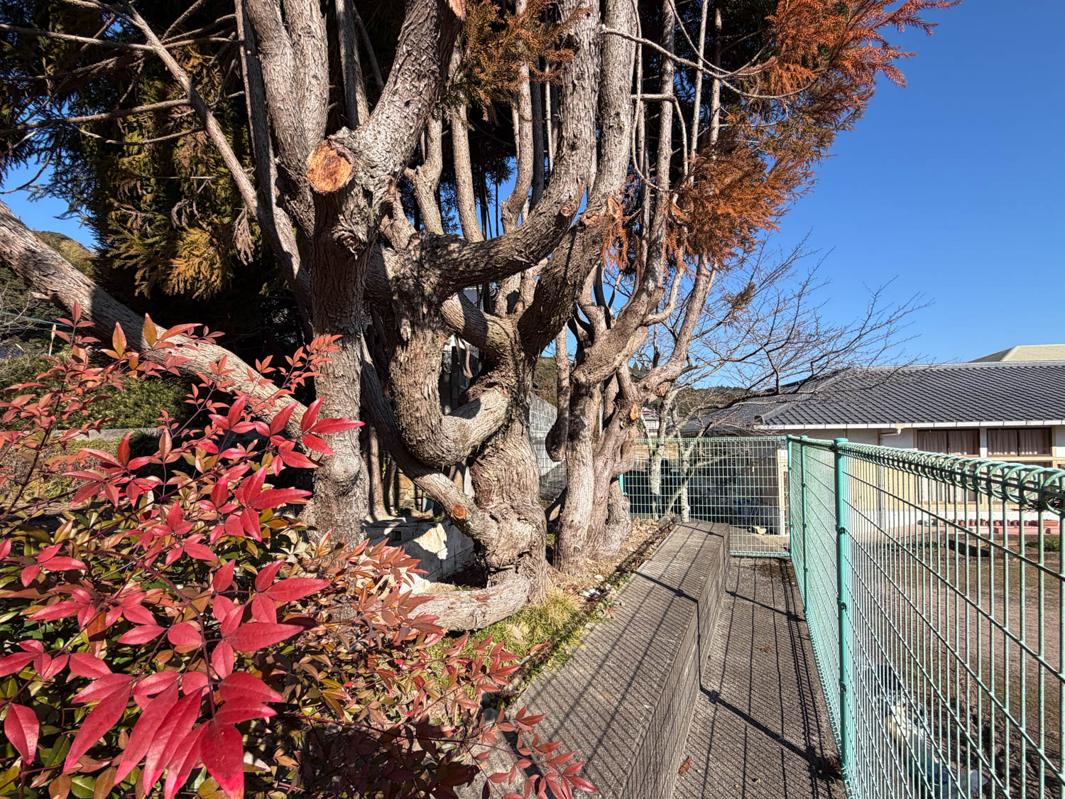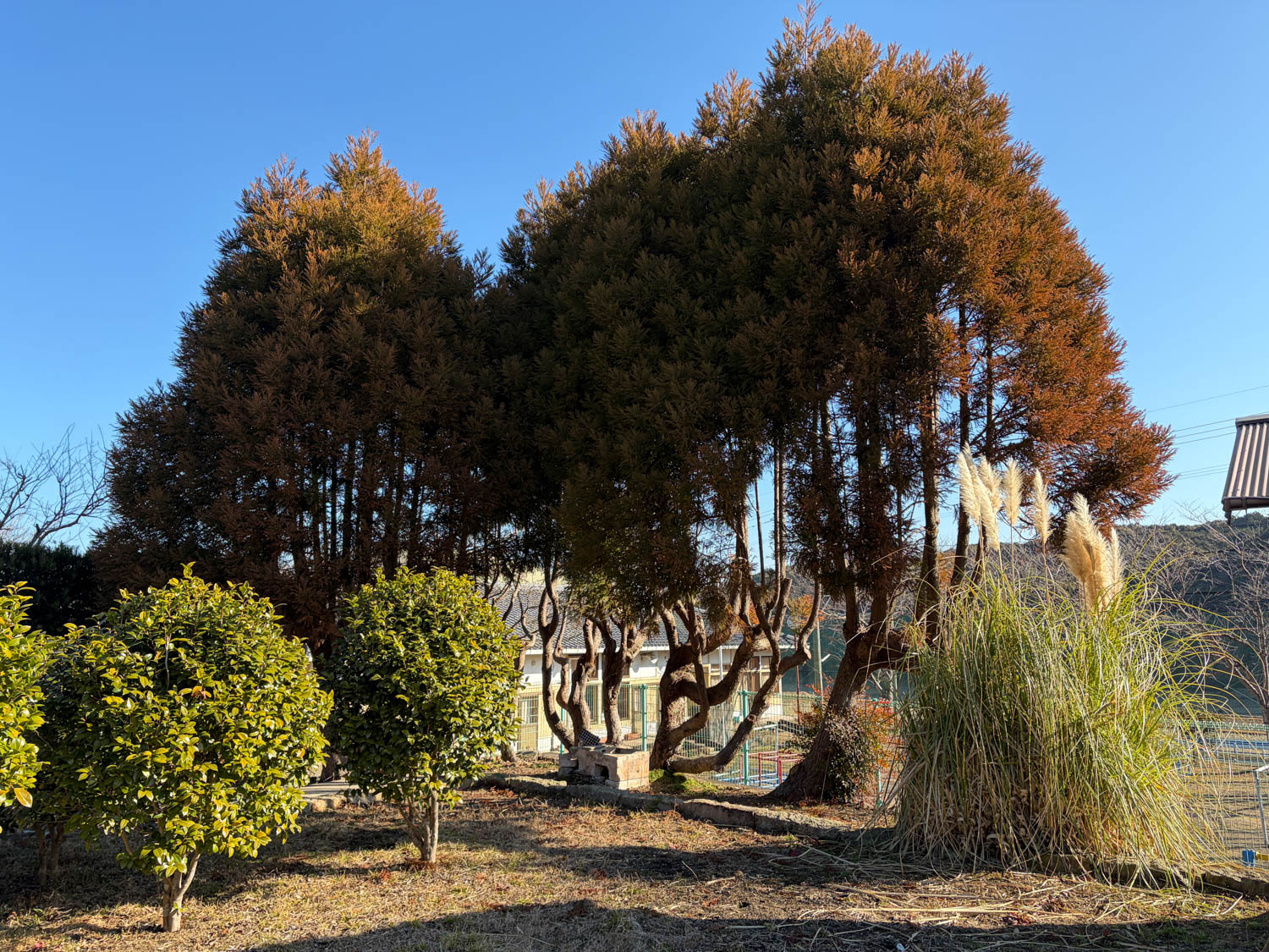 ゴールドクレストは下部が剪定されていて、風通しが良くなっていました。