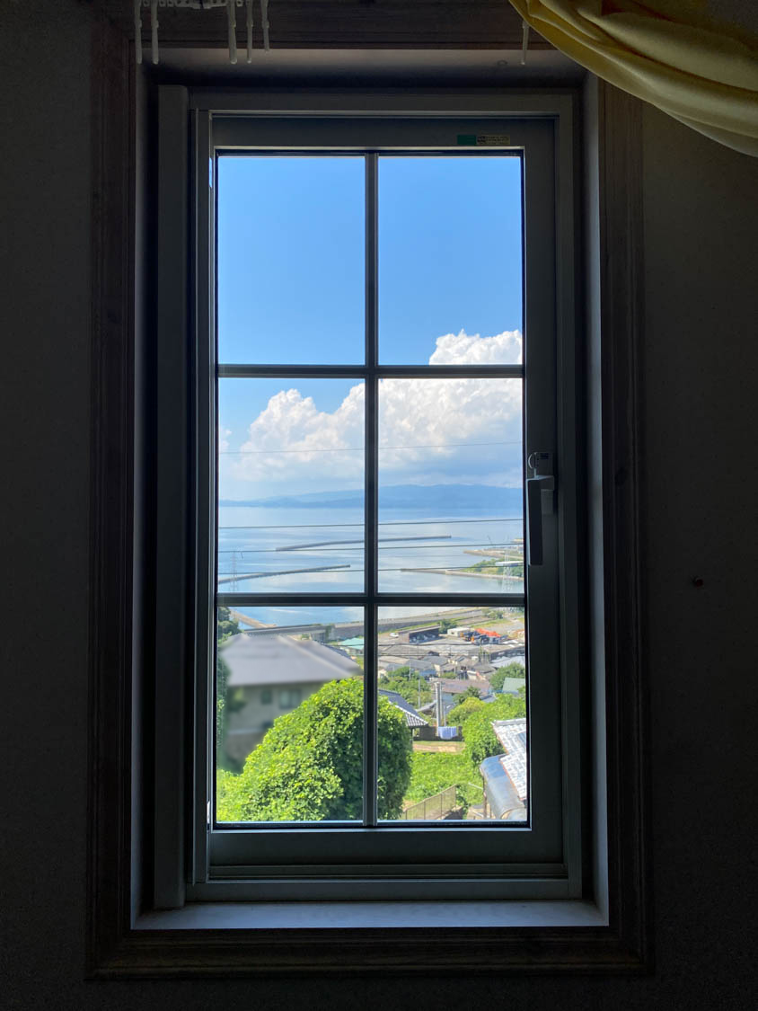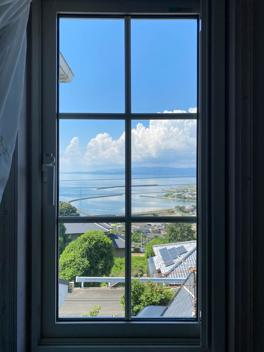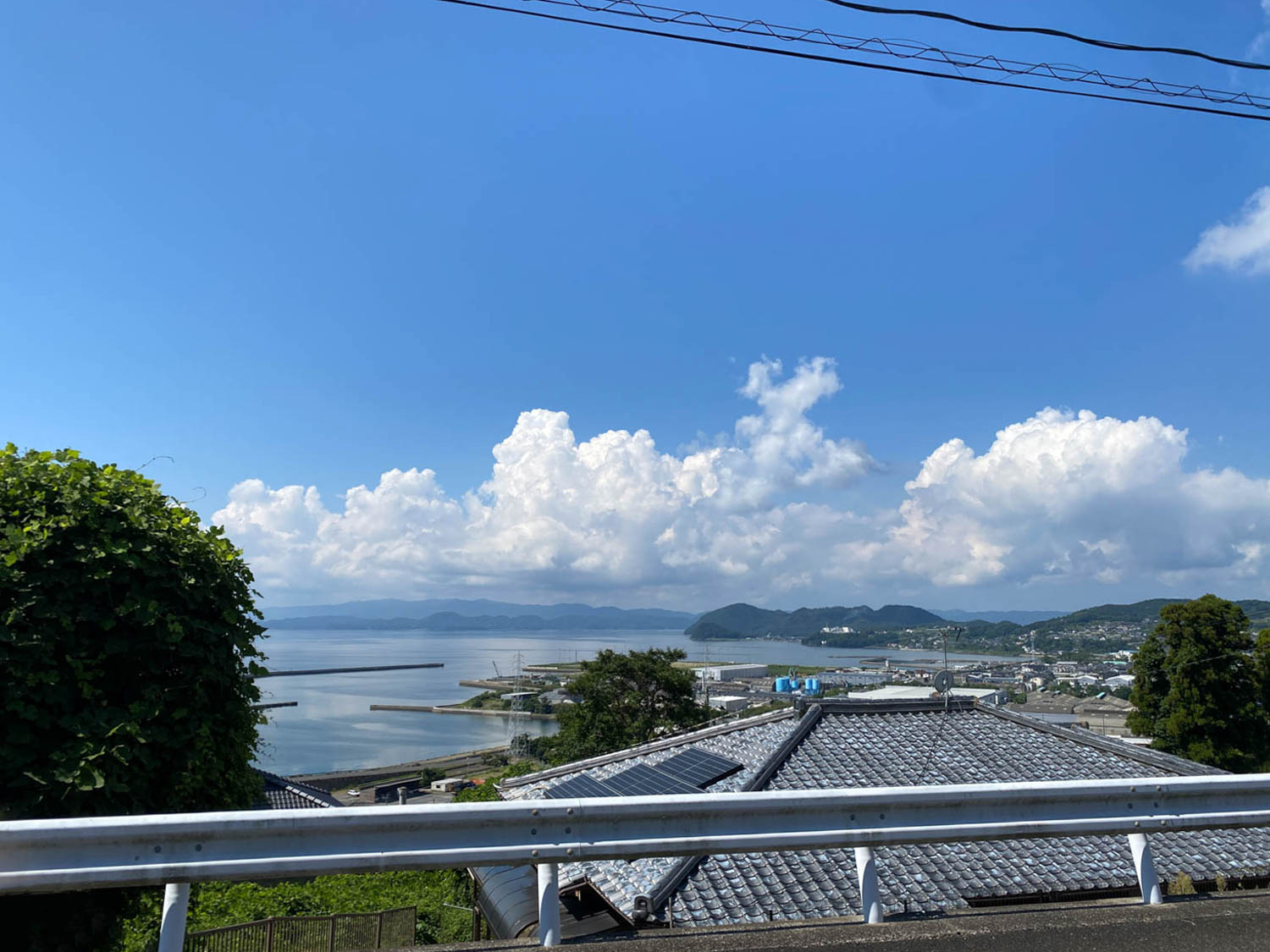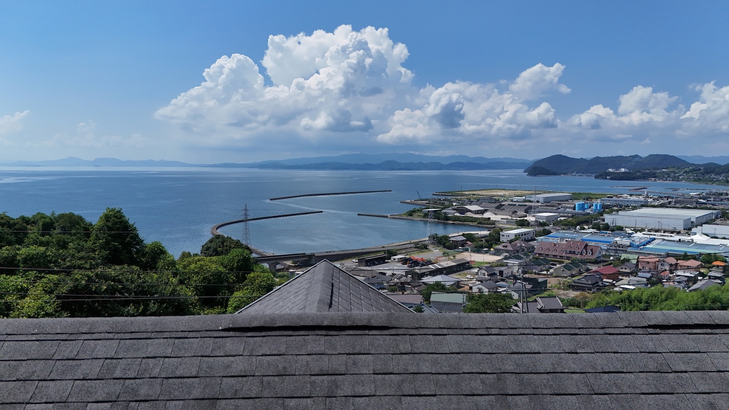 そしてこちらが物件から見える海の様子!遮るものが何もないので、対岸の山々まで見通すことができます。夏の雲がなんともノスタルジック…。