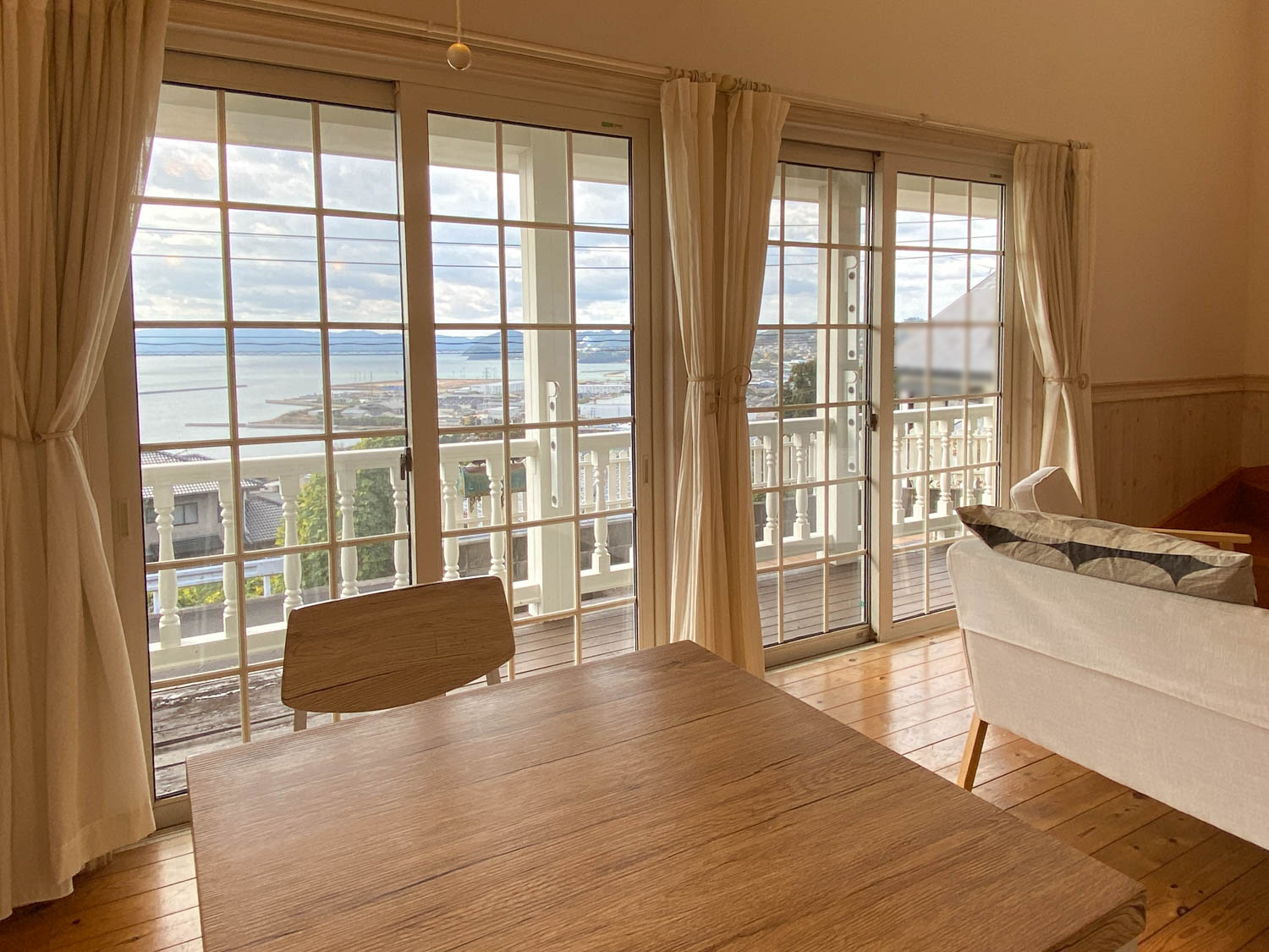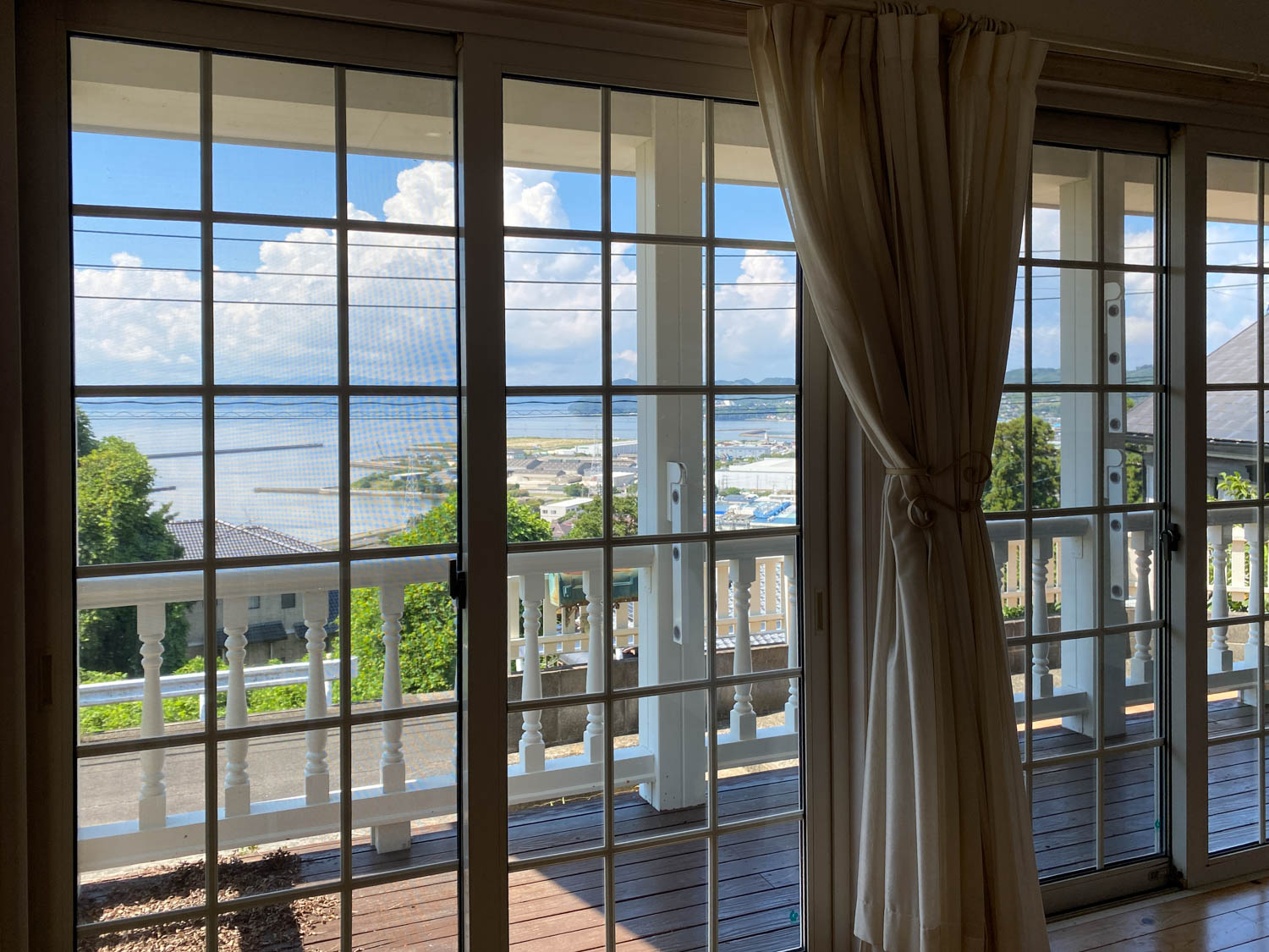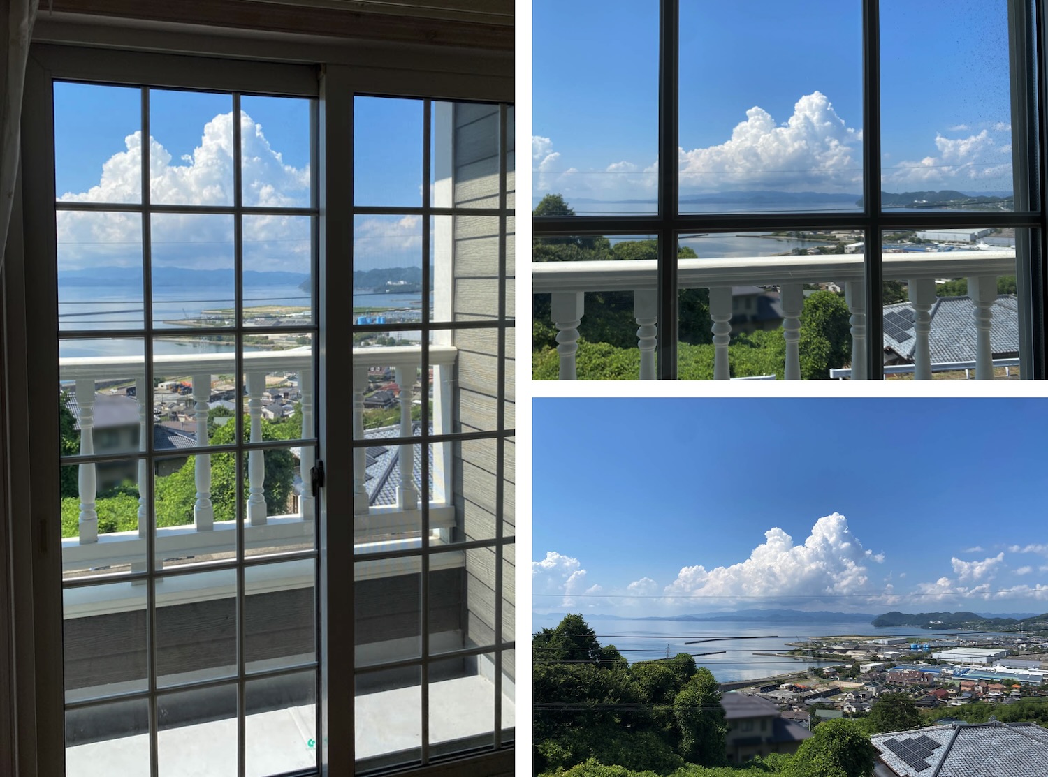 そしてこちらが物件から見える海の様子!遮るものが何もないので、対岸の山々まで見通すことができます。夏の雲がなんともノスタルジック…。