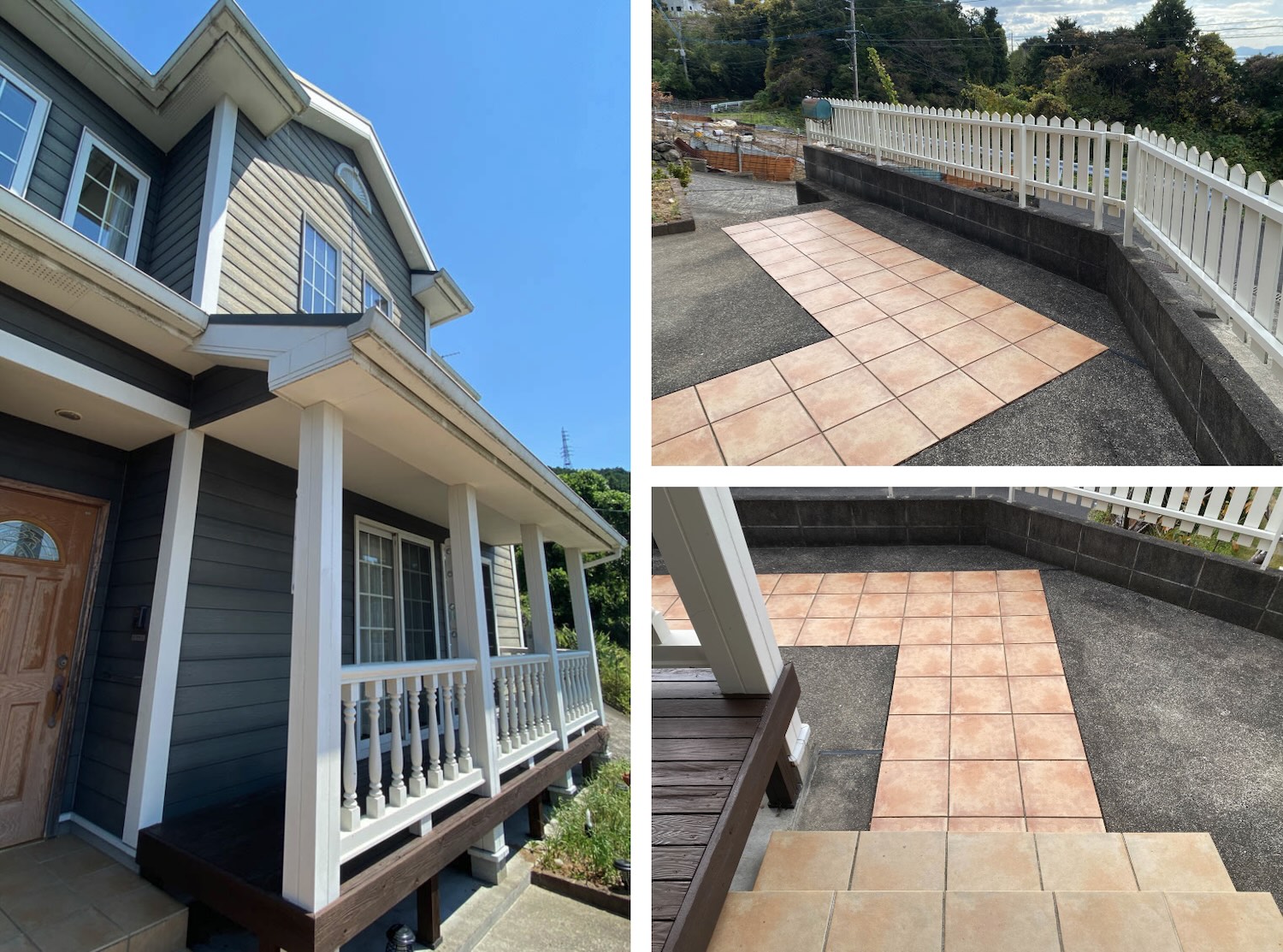 玄関横のカバードポーチは、海外のような雰囲気をより一層演出します。オレンジのアプローチタイルも可愛らしい。
