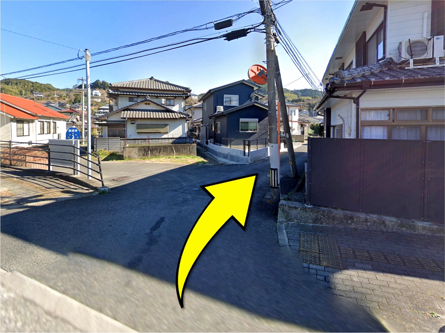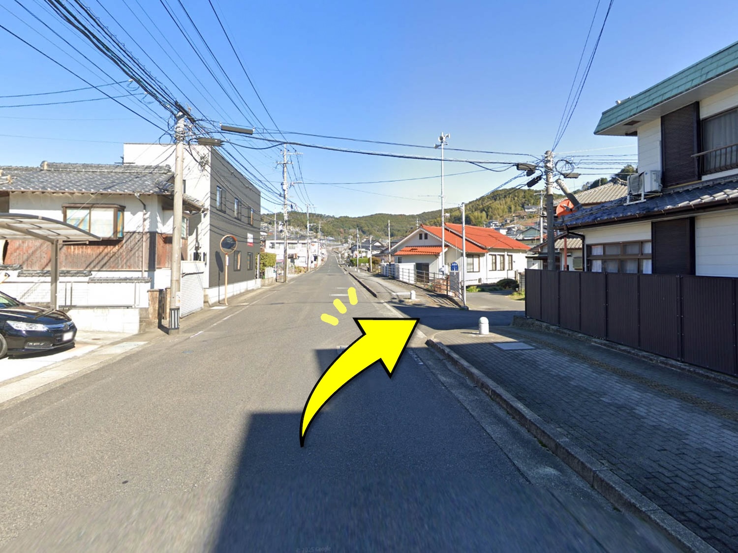 川棚警察署から60mほど進んだ先にある交差点を右に曲がります。物件までは緩やかなカーブや勾配がある道を進みますが、高台から見える景色を思い浮かべると自然と胸が高鳴ります。