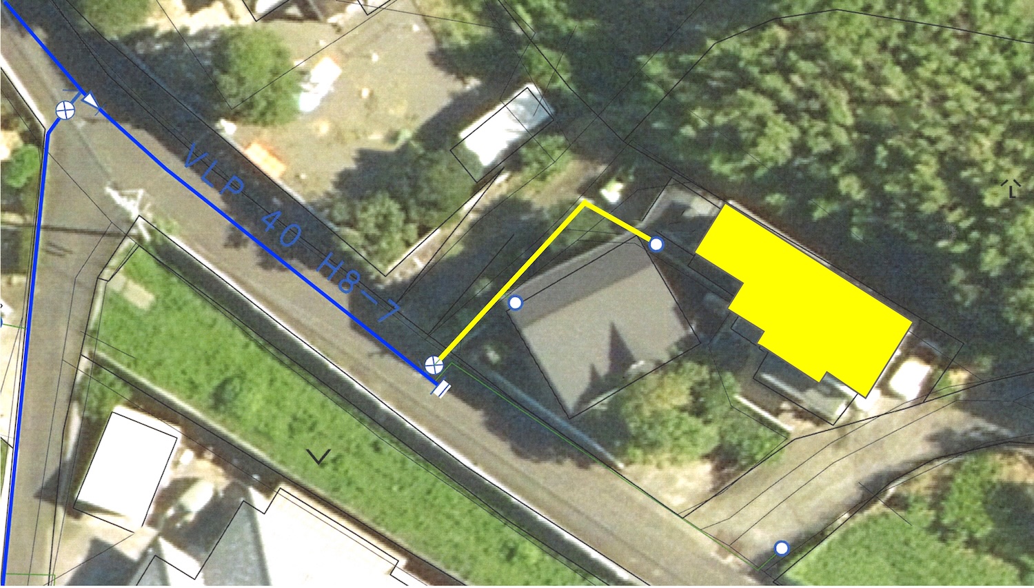 上水道は黄色の線のように敷地まで引き込まれています。下水道は未整備のエリアのため、敷地内に浄化槽が設置されていました。