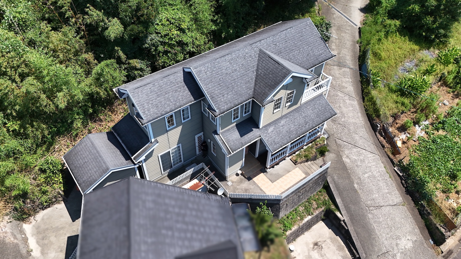 屋根には、海外では一般的なアスファルトシングルが使用されています。軽量で耐久性に優れていますが、今後はメンテナンスなども必要になりそうです。