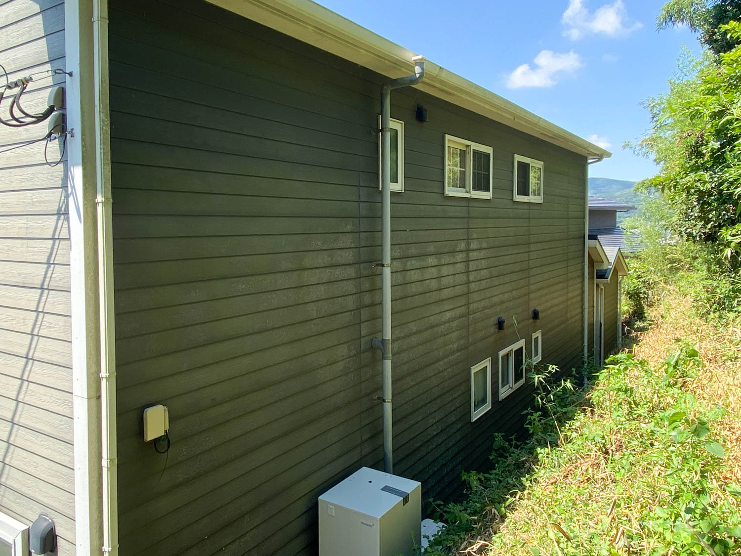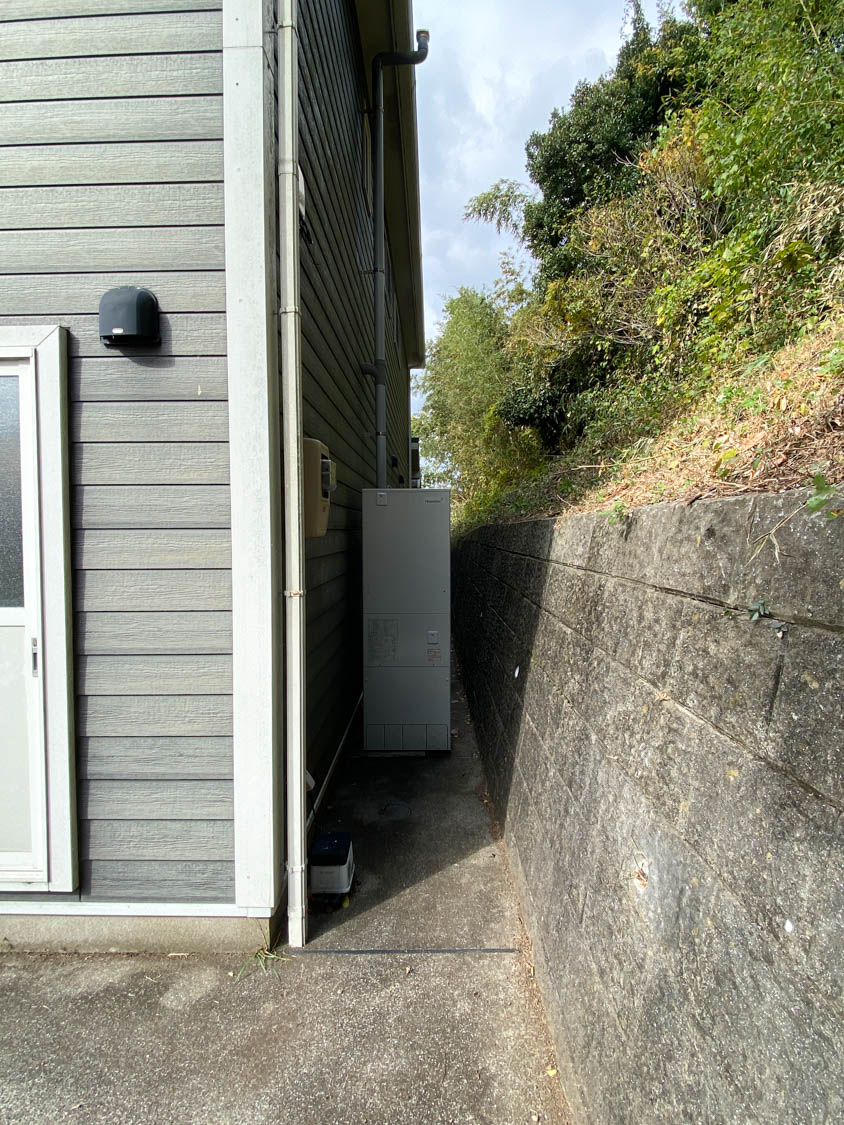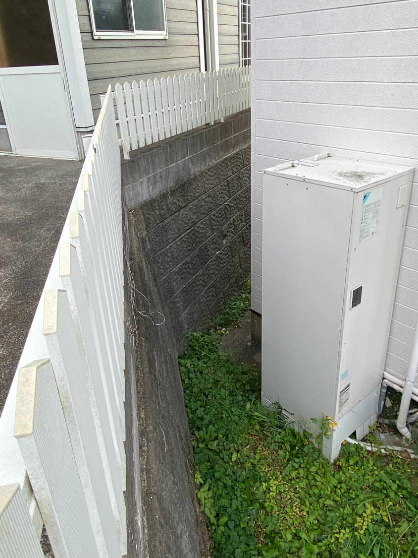 こちらは北側の様子。エアコンの室外機やエコキュート(2024年製)が設置されていました。
