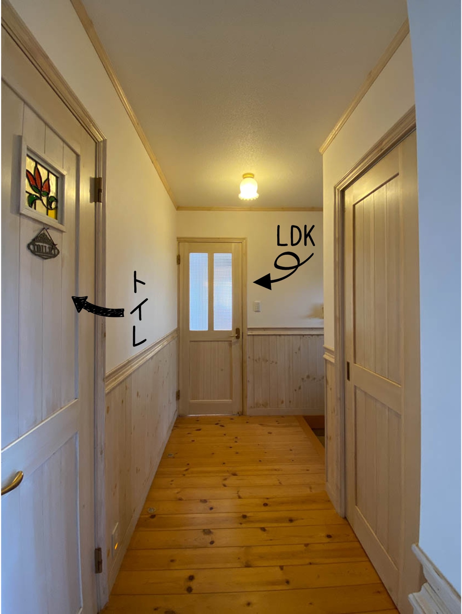 こちらの洋室にも可愛らしいステンドグラスが施されています。