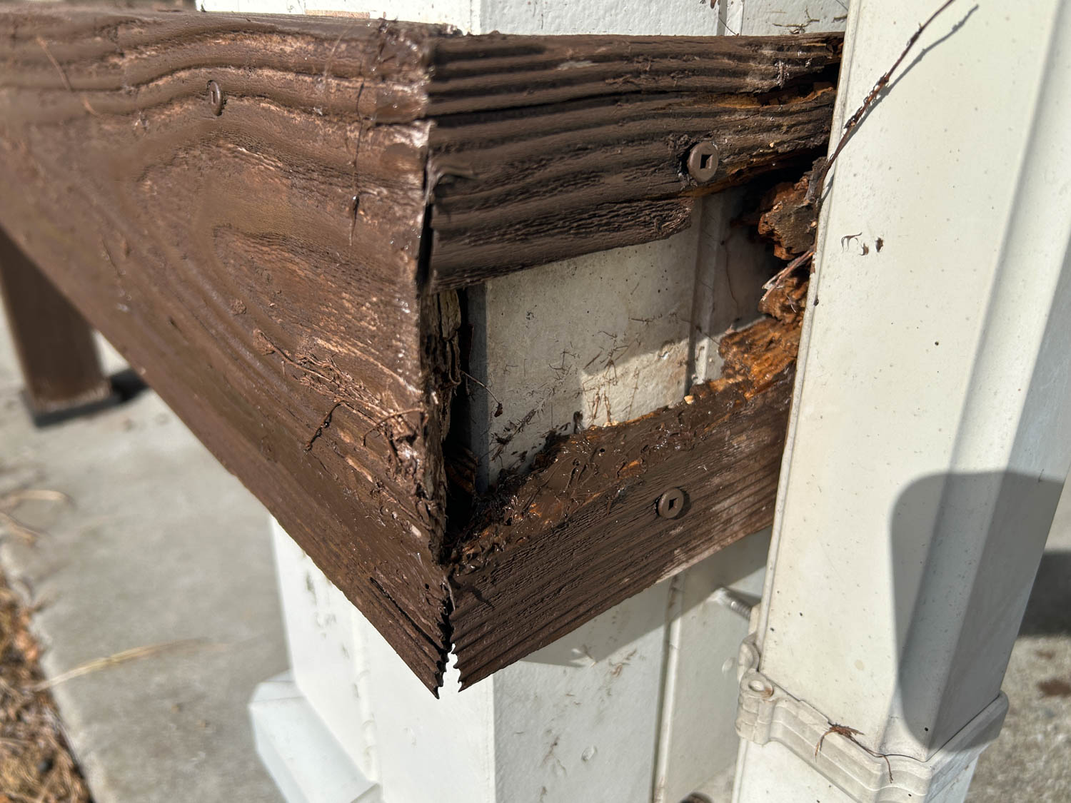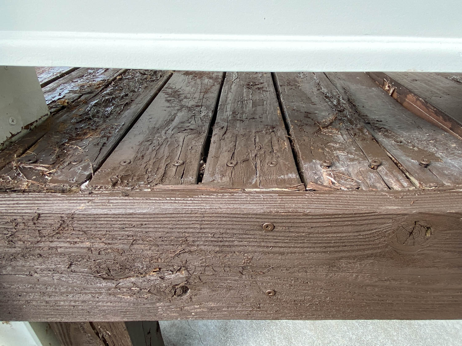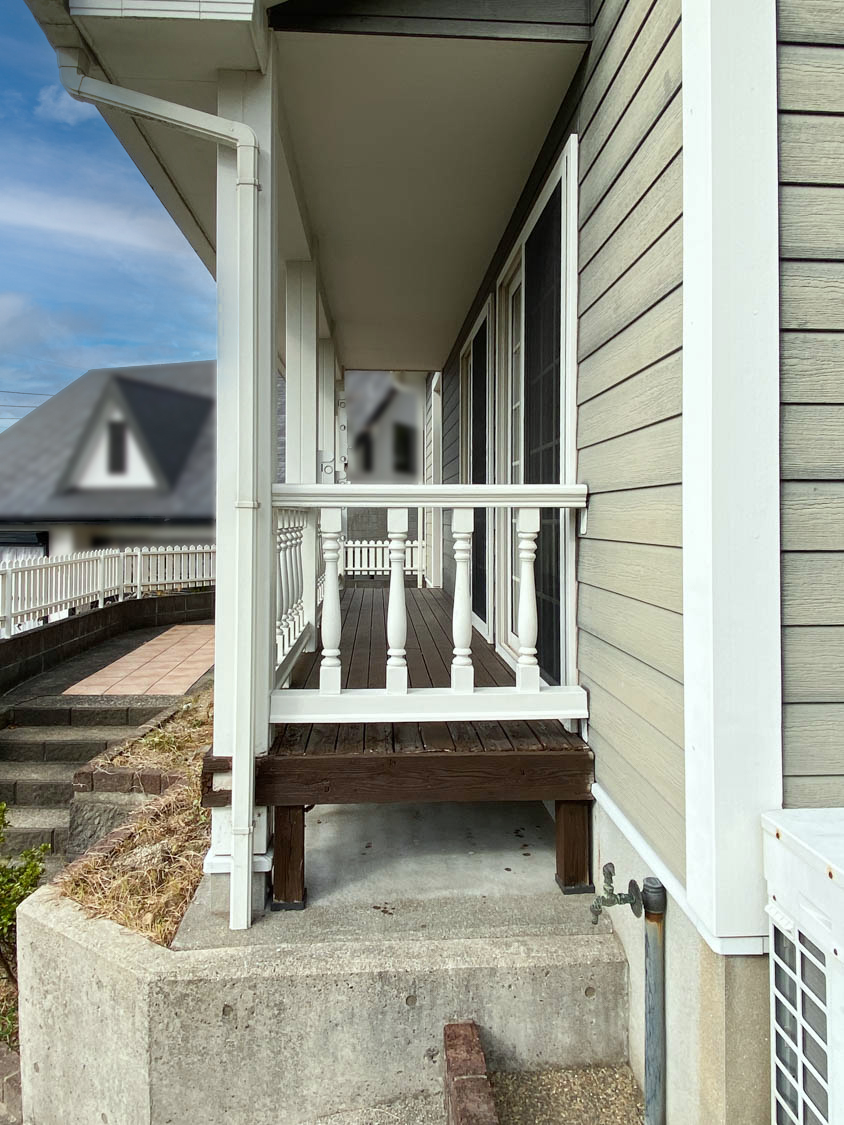 デッキの端の方は木材が少し傷んでいる様子でした。