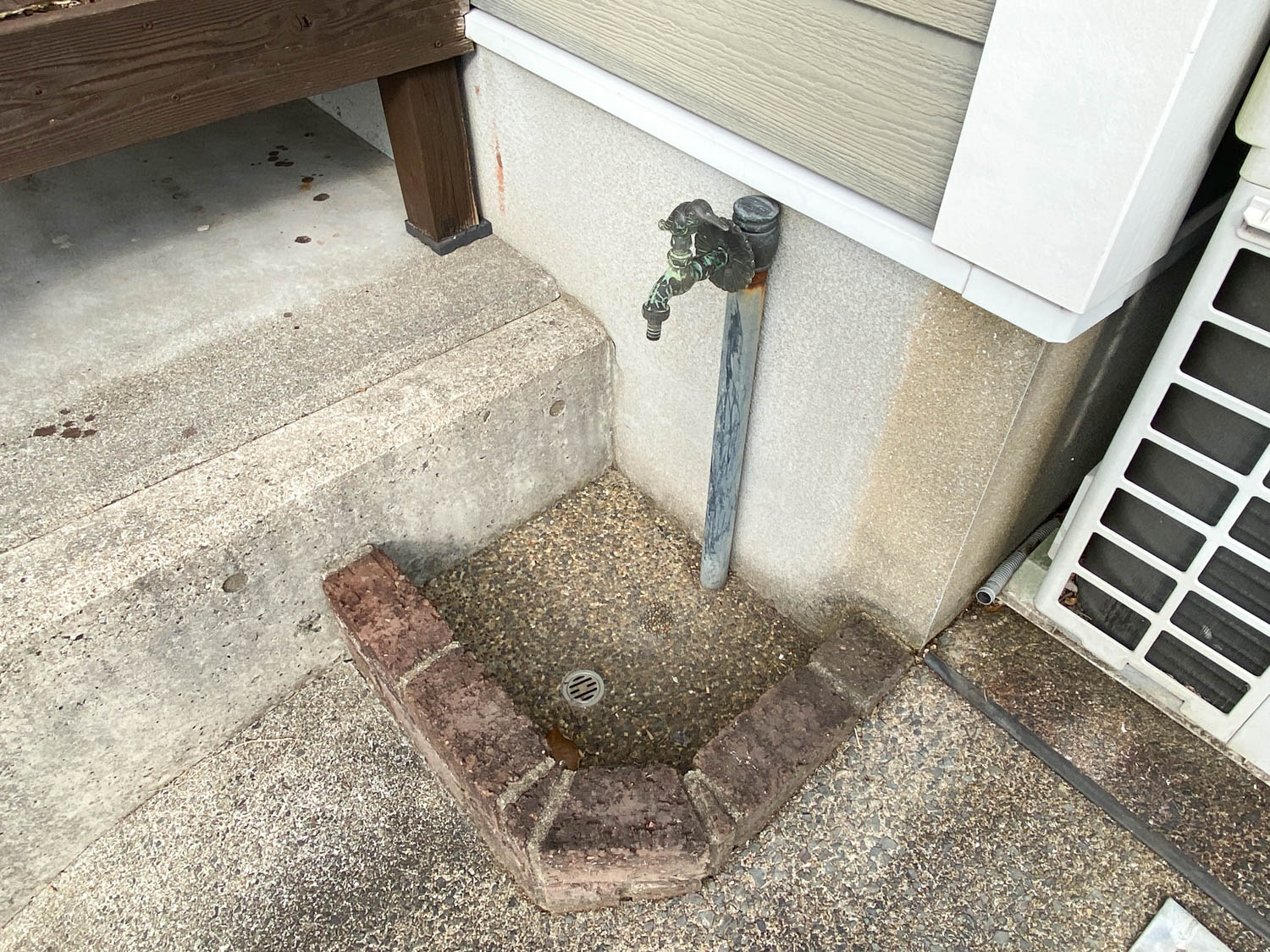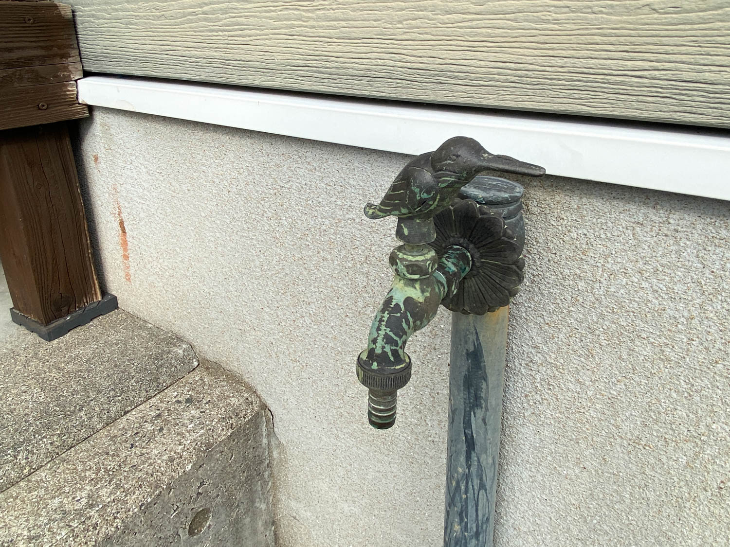 近くには、アンティークな鳥のデザインの屋外水栓も設置されていました。