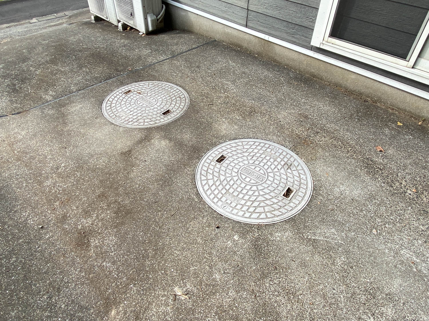 建物横には横幅2.7m、奥行き4.2mほどの、車一台が駐車できるスペースがありました。浄化槽もこちらに設置されています。