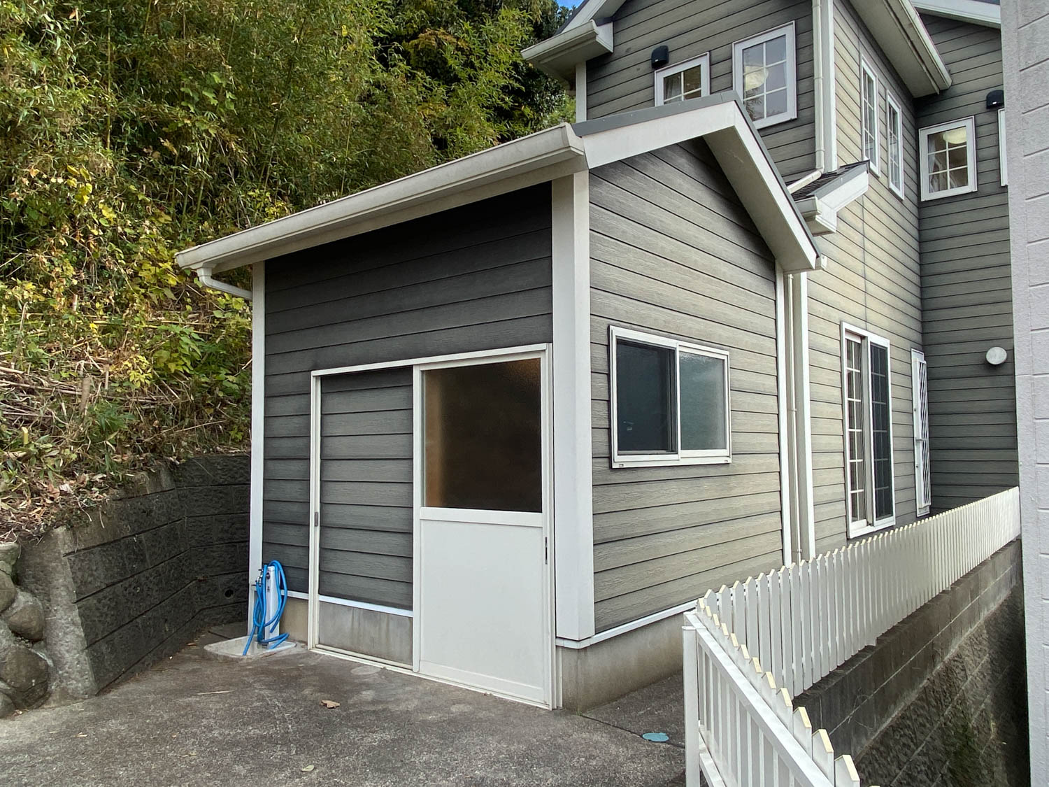 鎧木目よろいもくめの外壁は、お好みの色に塗り直すのも良さそう。