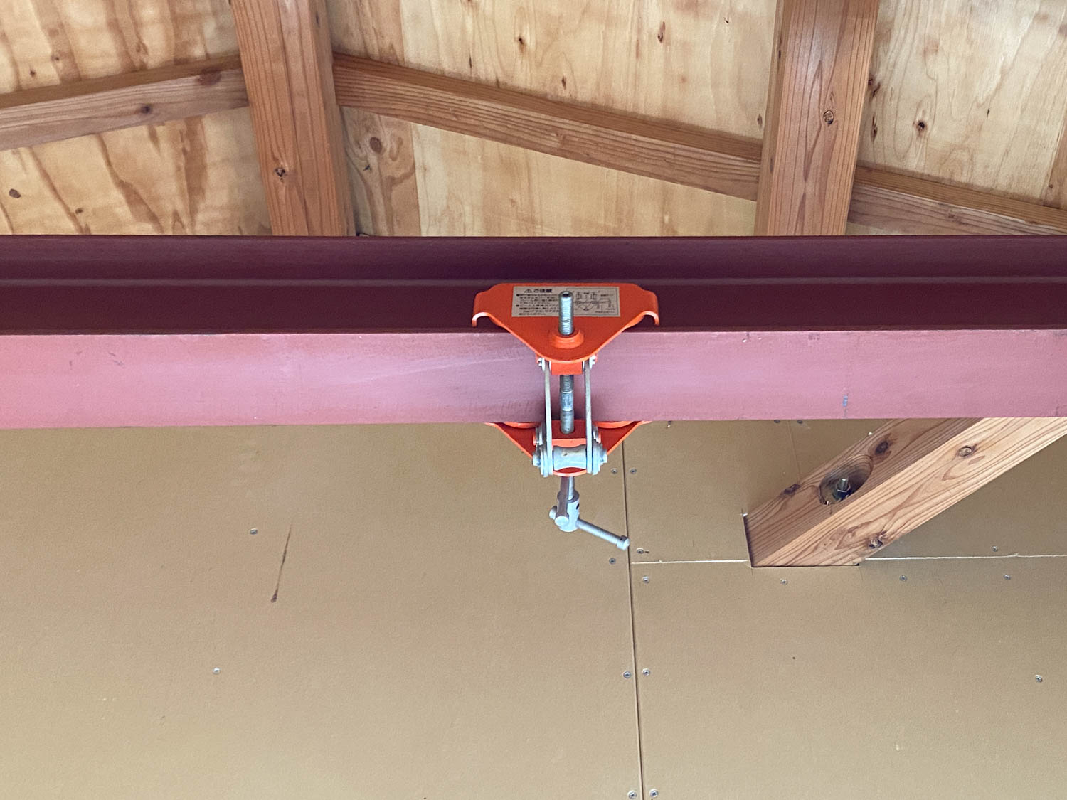 鉄骨にはウインチが取り付けられるようになっているので、バイクのメンテナンスなどにもご活用いただけそう。壁にはところどころシミのようなものが見られました。