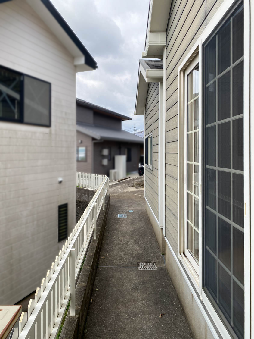 南側通路の様子。廊下からの勝手口も設置されています。