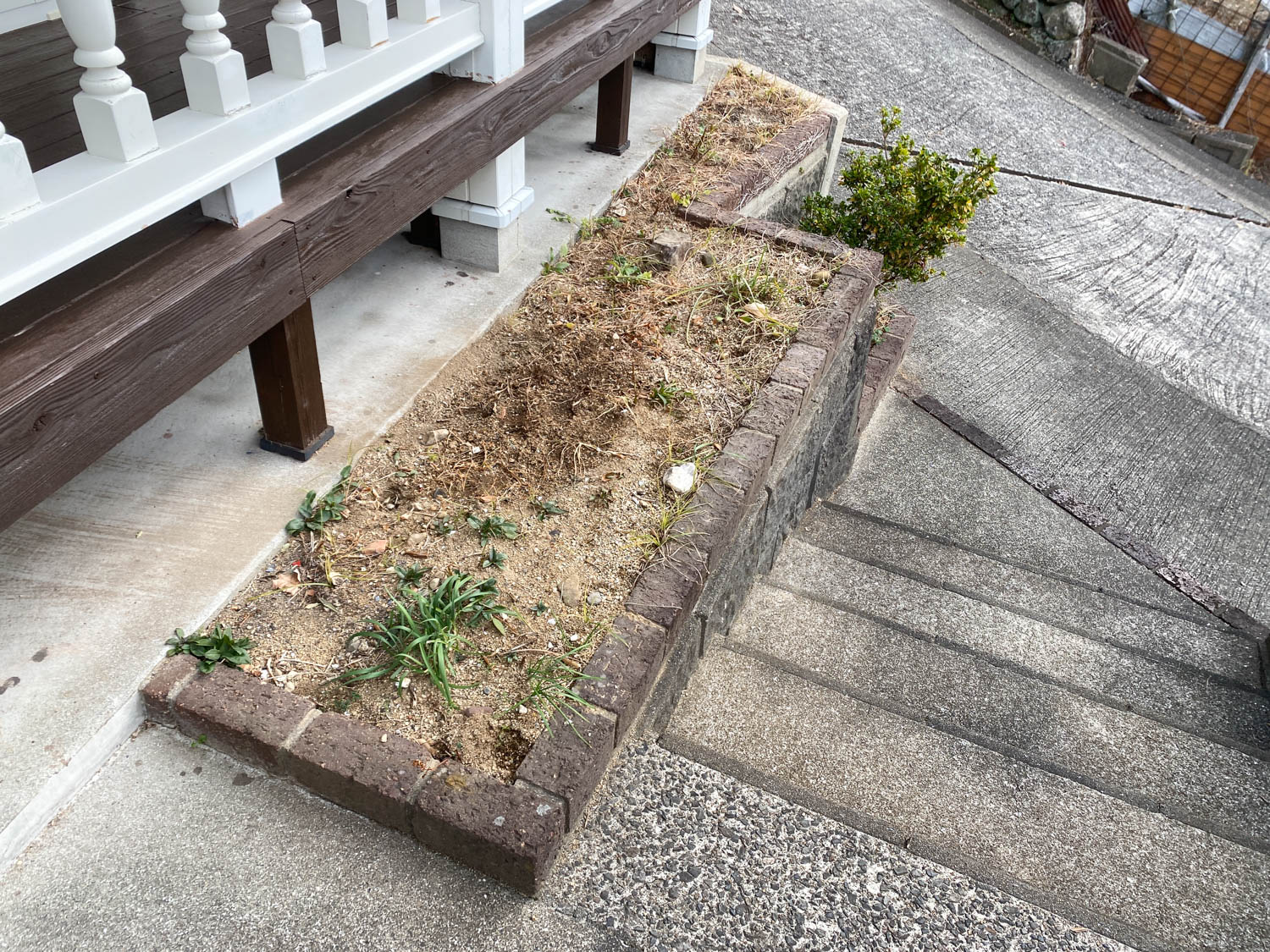 ウッドデッキの前にはコンパクトな花壇がありました。ちょうど良い大きさなので、ガーデニングにもぴったりです。