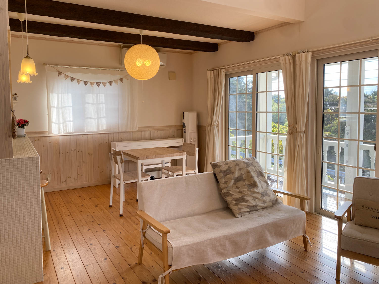ご飯の後はリビングでゆっくりと団欒。窓から見える景色を前に自然と会話も弾みます。