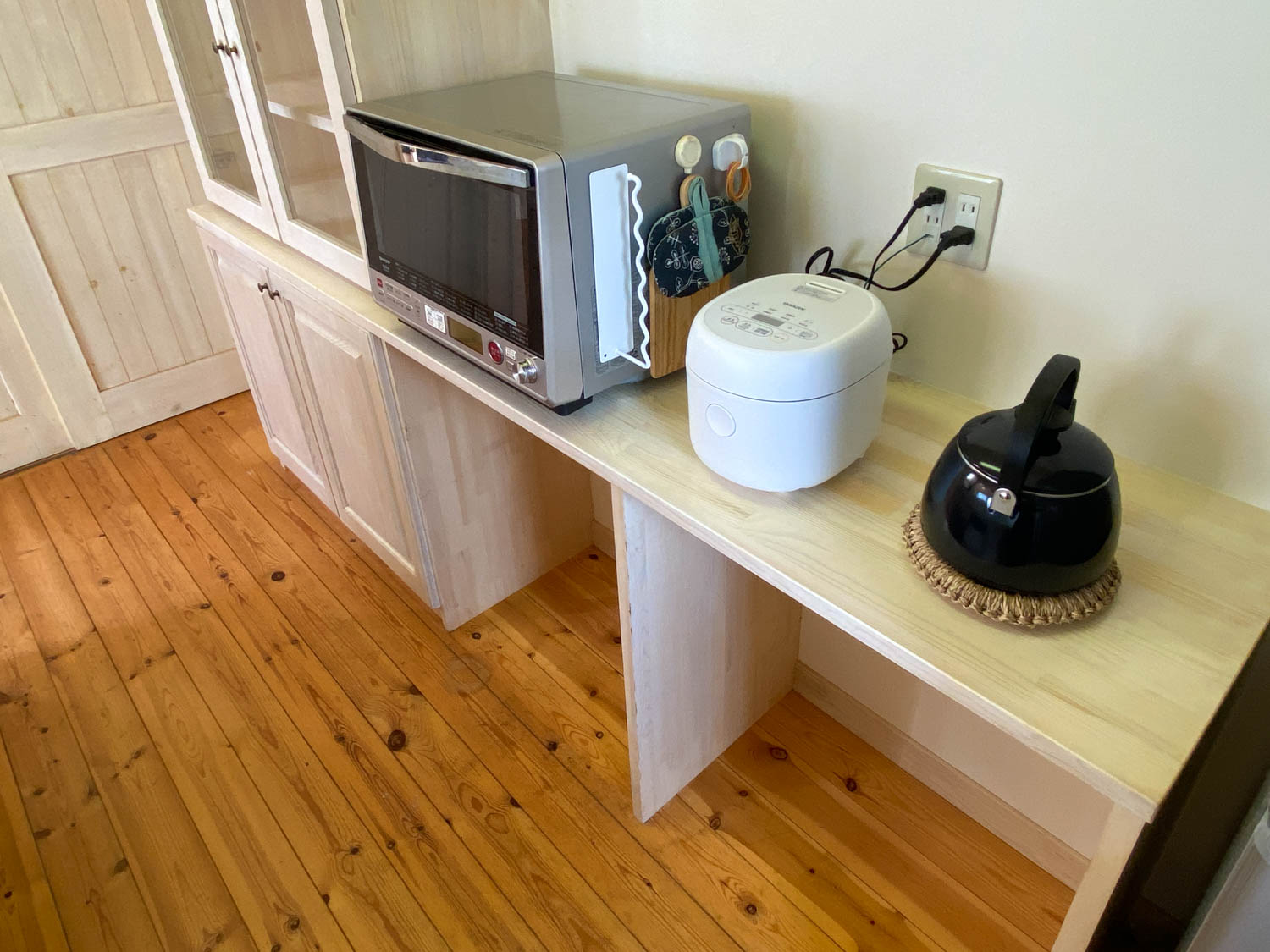 机の上にコンセントも設置されているので、パソコンやタブレッドでの作業も捗ります。