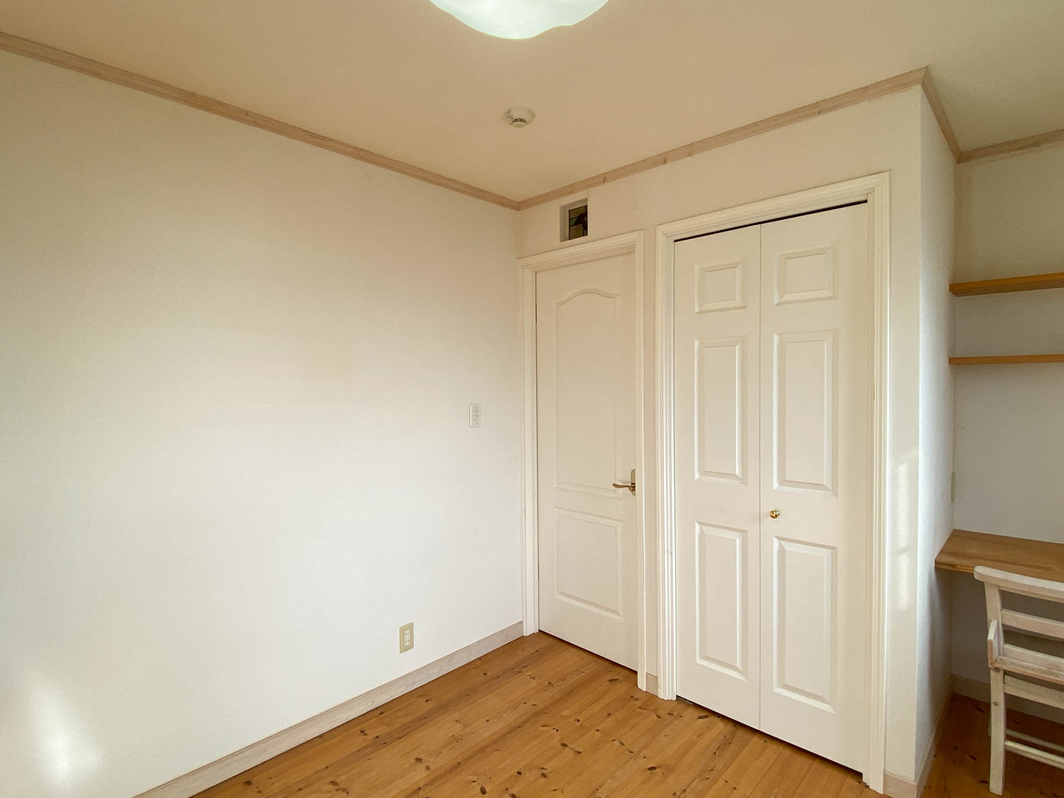 こちらのお部屋にも収納とデスクが設けられています。