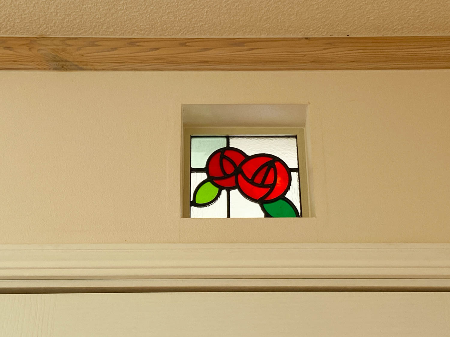 まずは、バラの模様のステンドグラスが目印の手前のお部屋からご紹介。