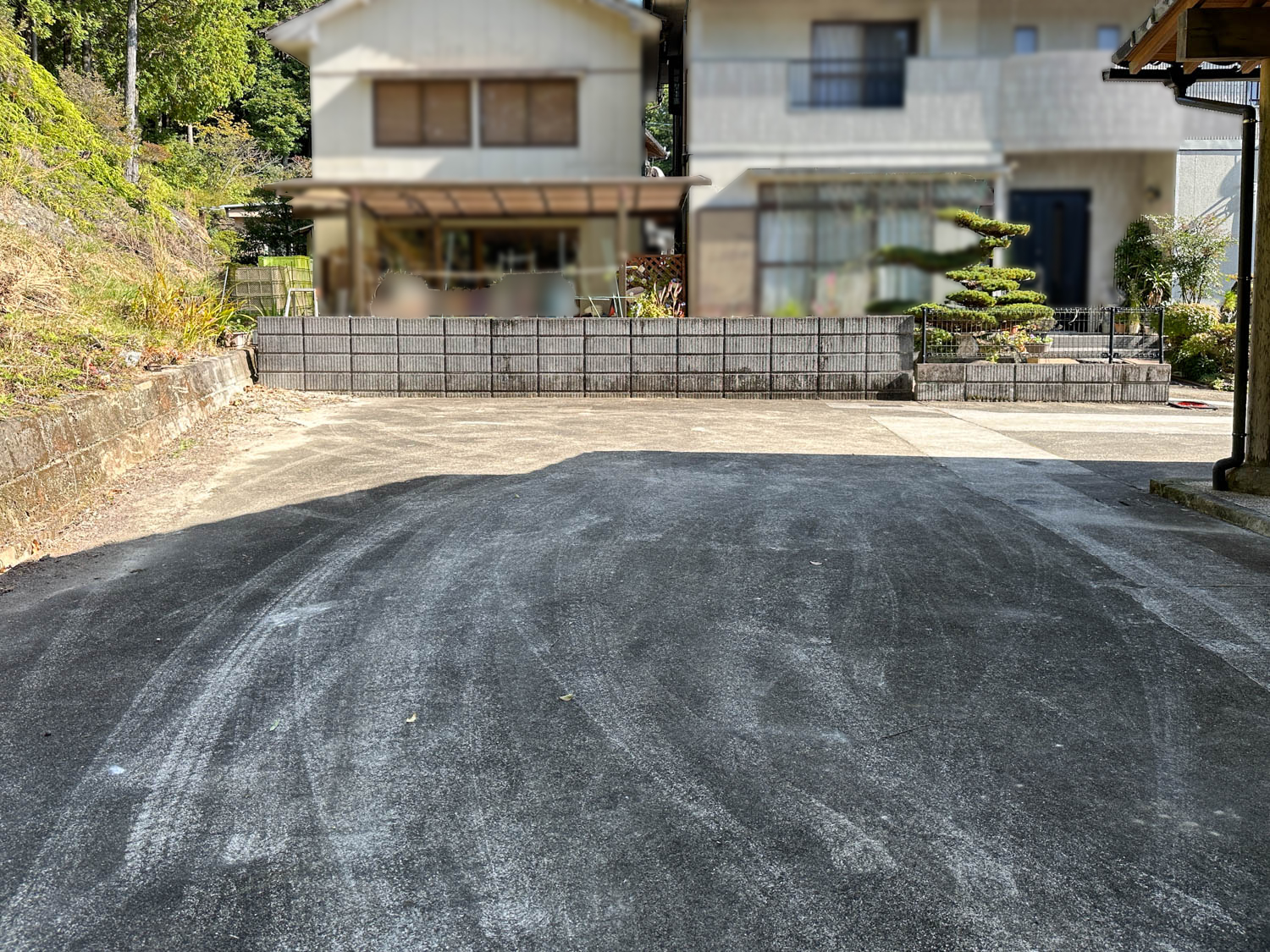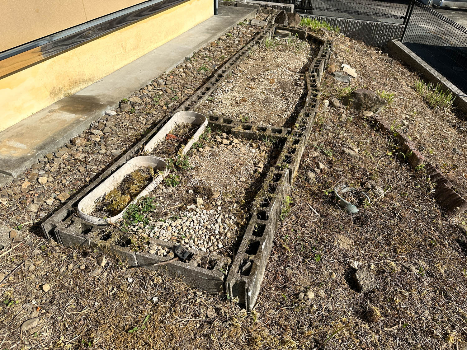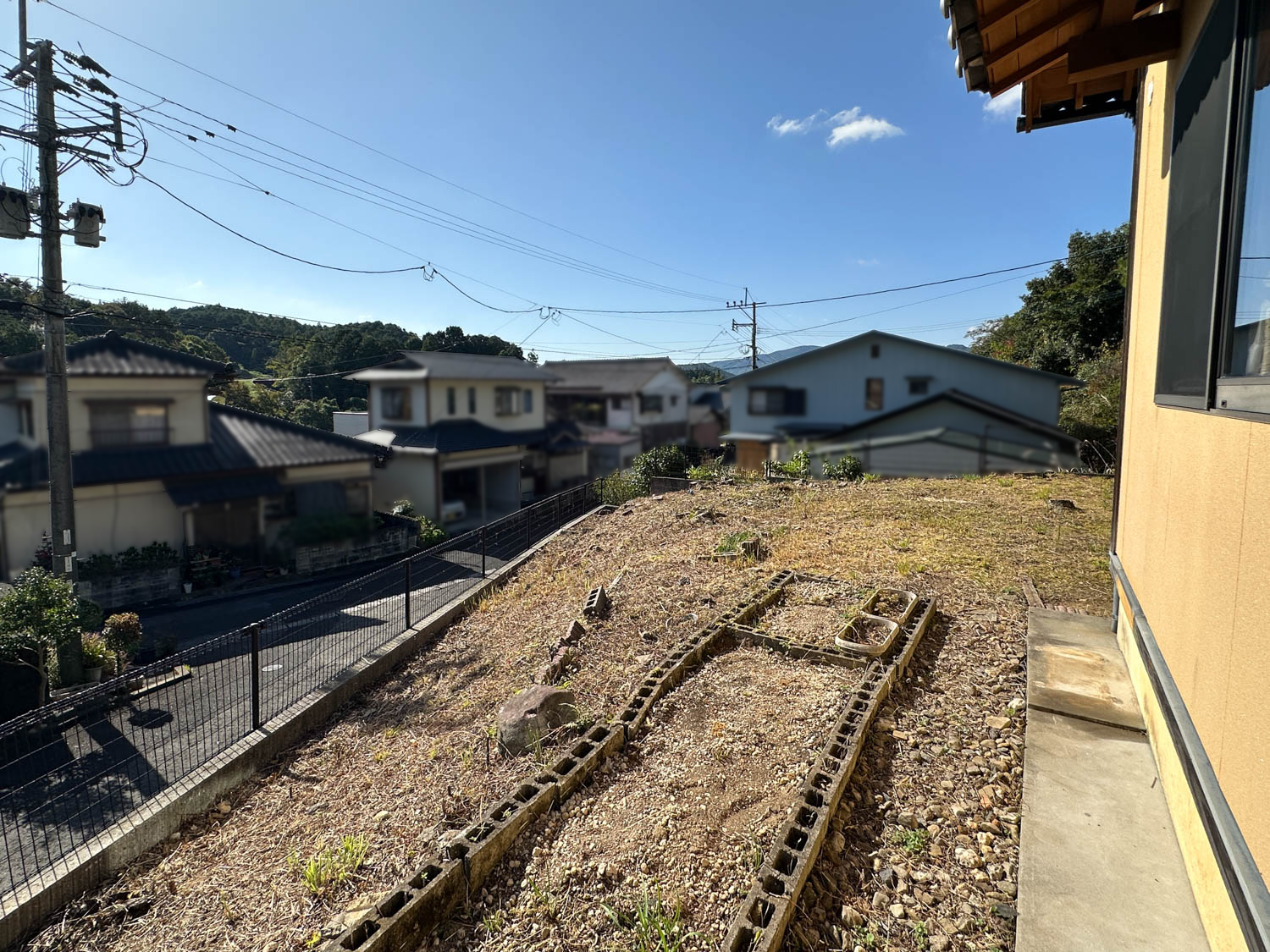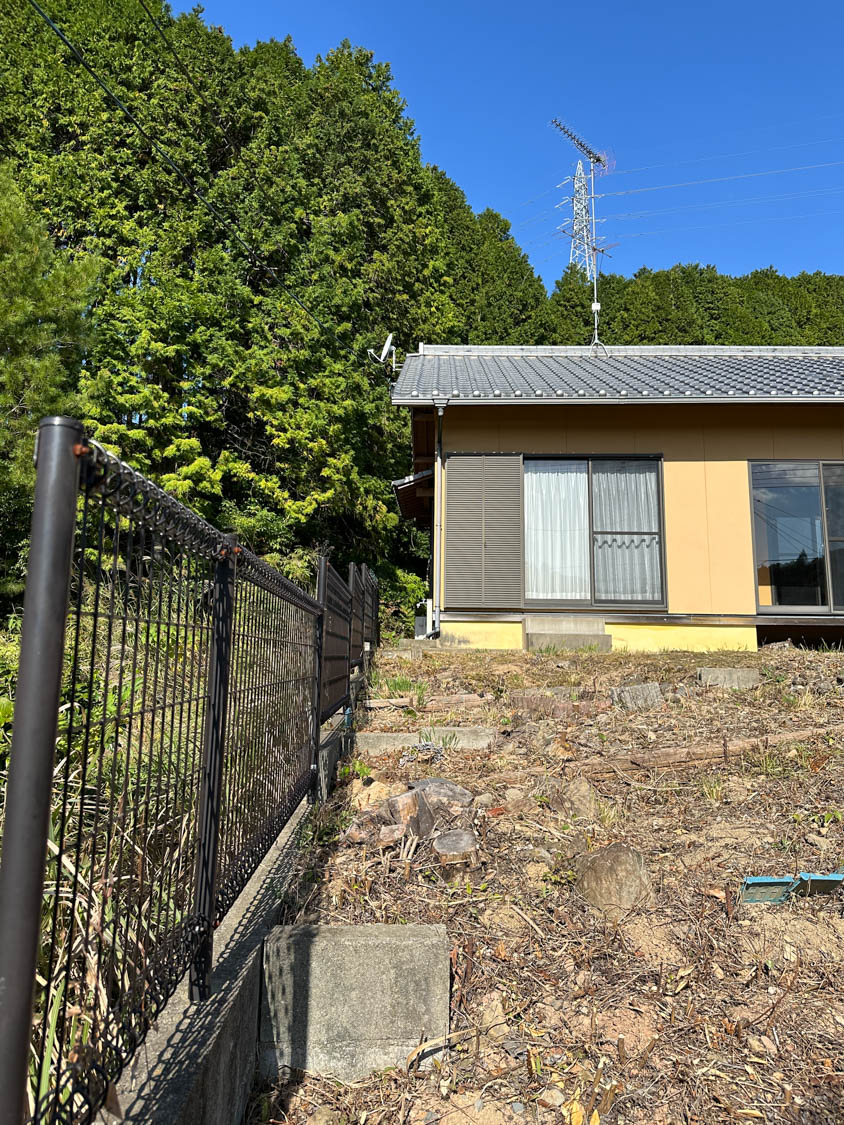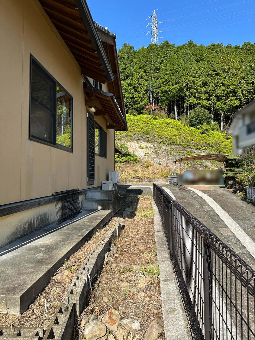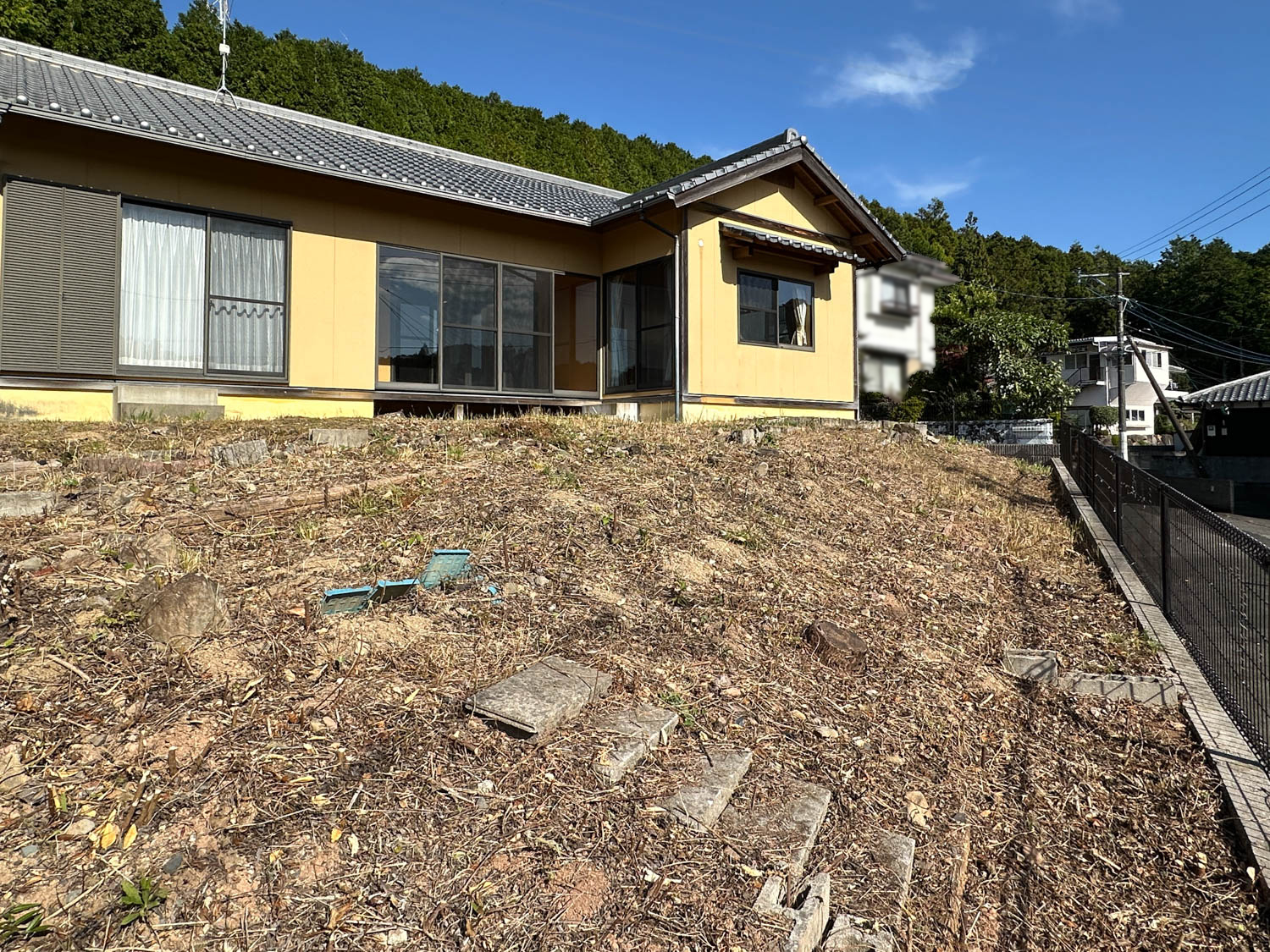 庭部分は道路側に向かって傾斜が付いていて、コンクリート製の階段なども置かれていました。
