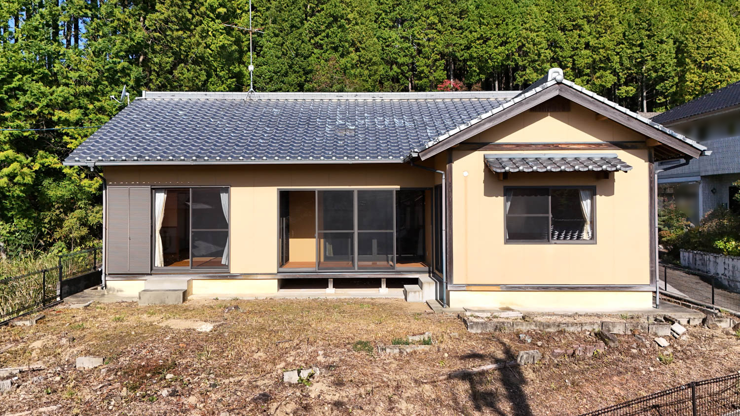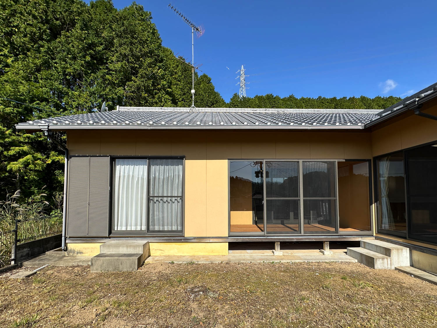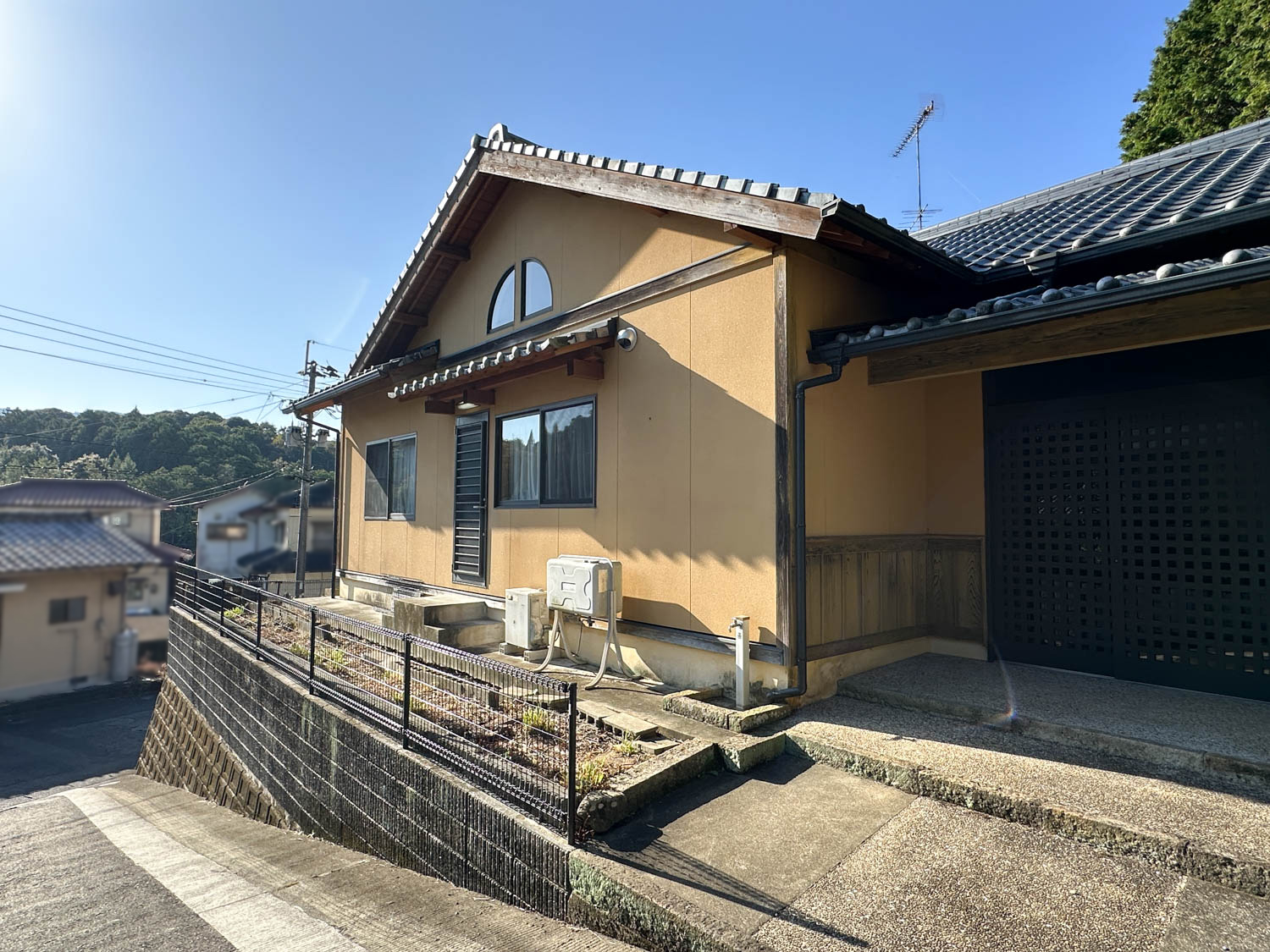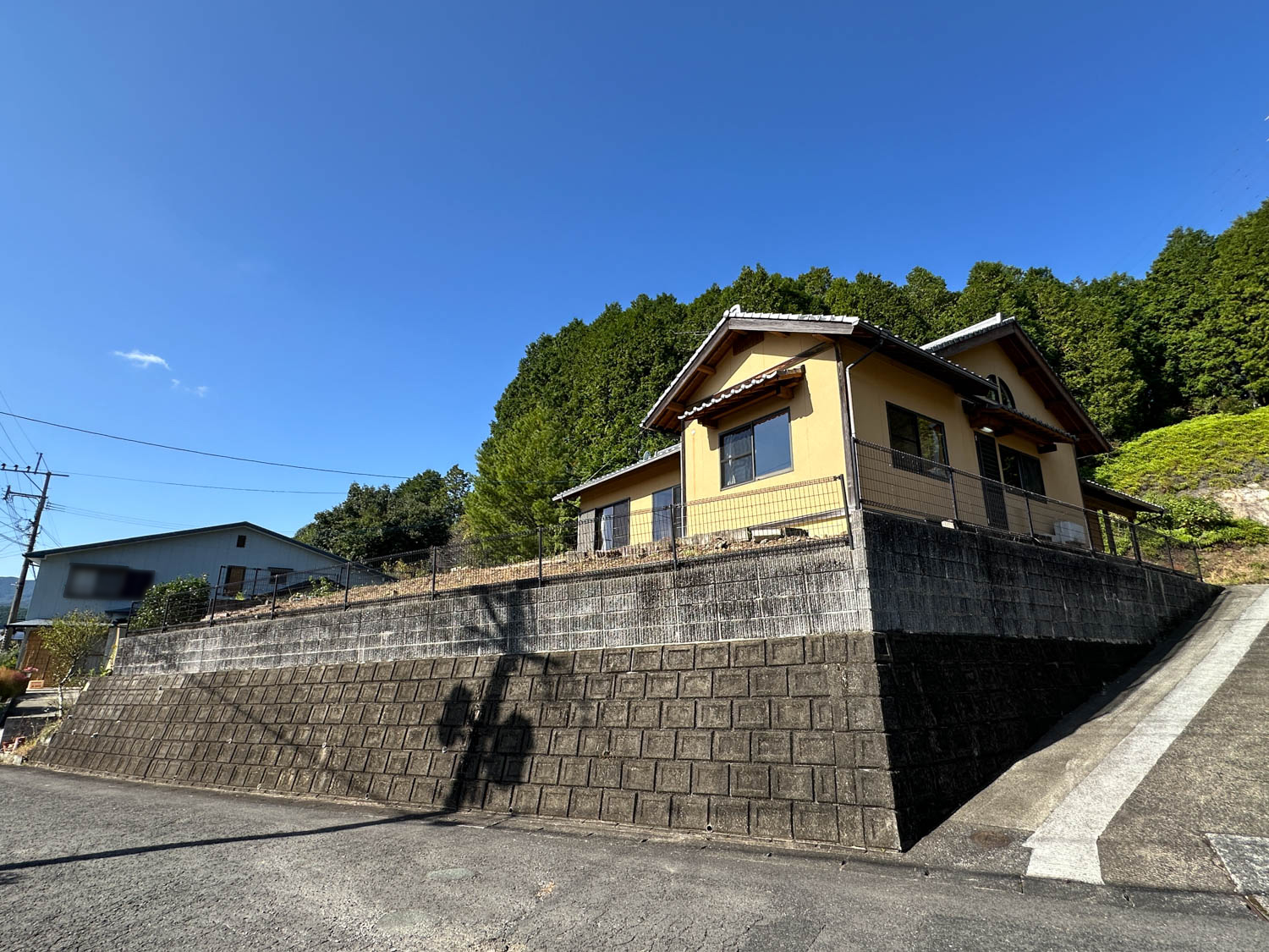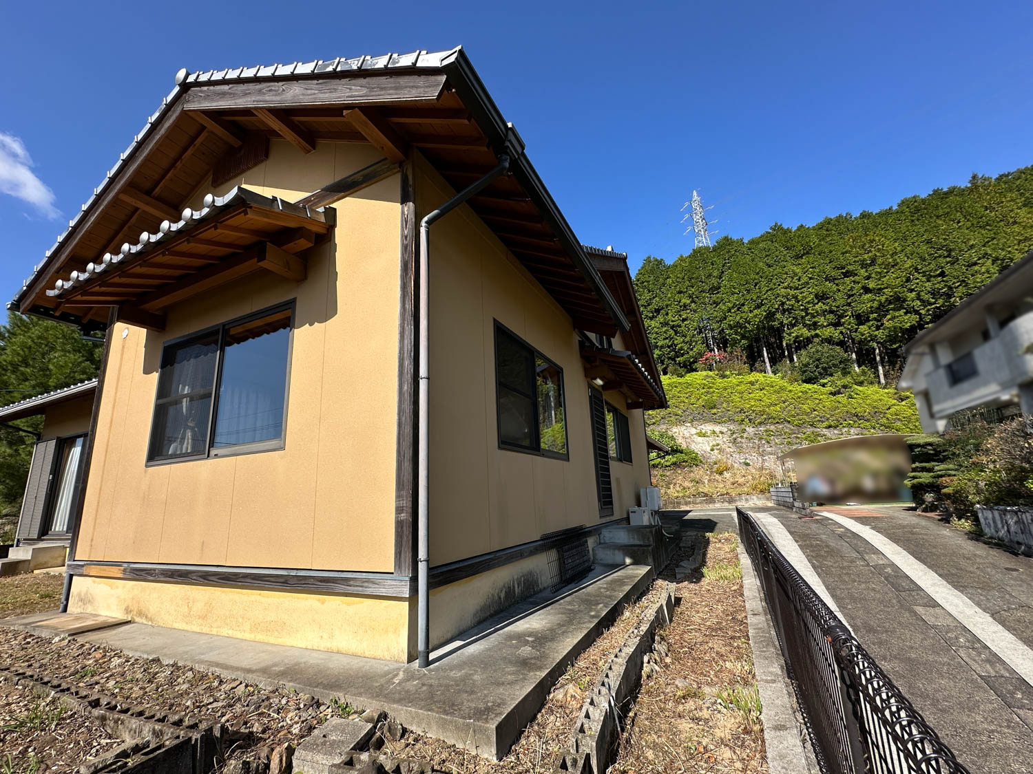 庭部分は道路側に向かって傾斜が付いていて、コンクリート製の階段なども置かれていました。