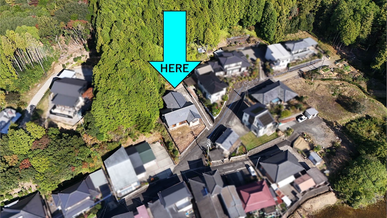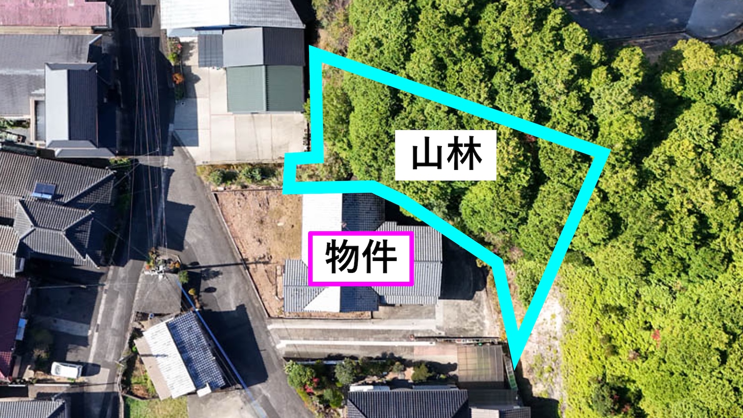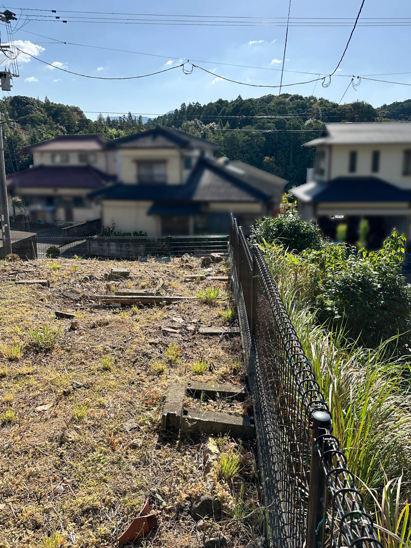 今回、宅地の他に裏の山林も付属します。水色の線で囲われている135坪ほどの部分が対象です。