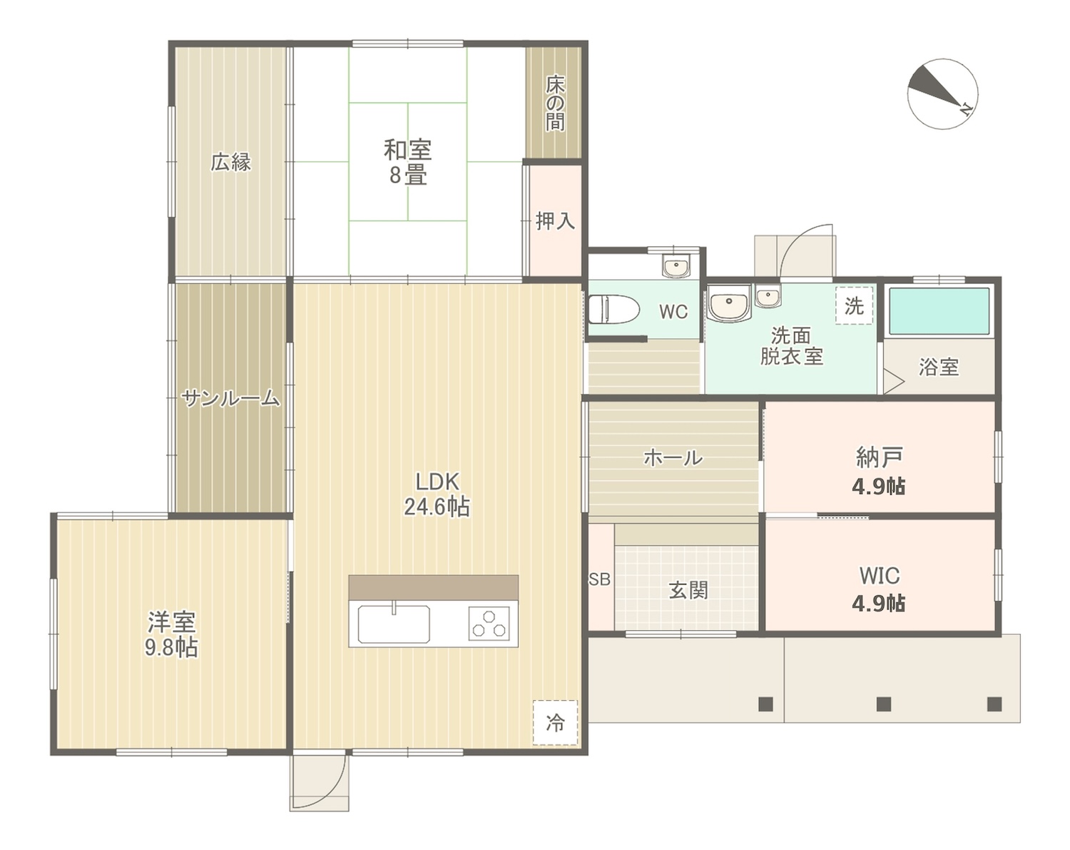 洋室・サンルーム・広縁からもお庭に出入りできるので、どこにいても家族の気配を感じることができます。