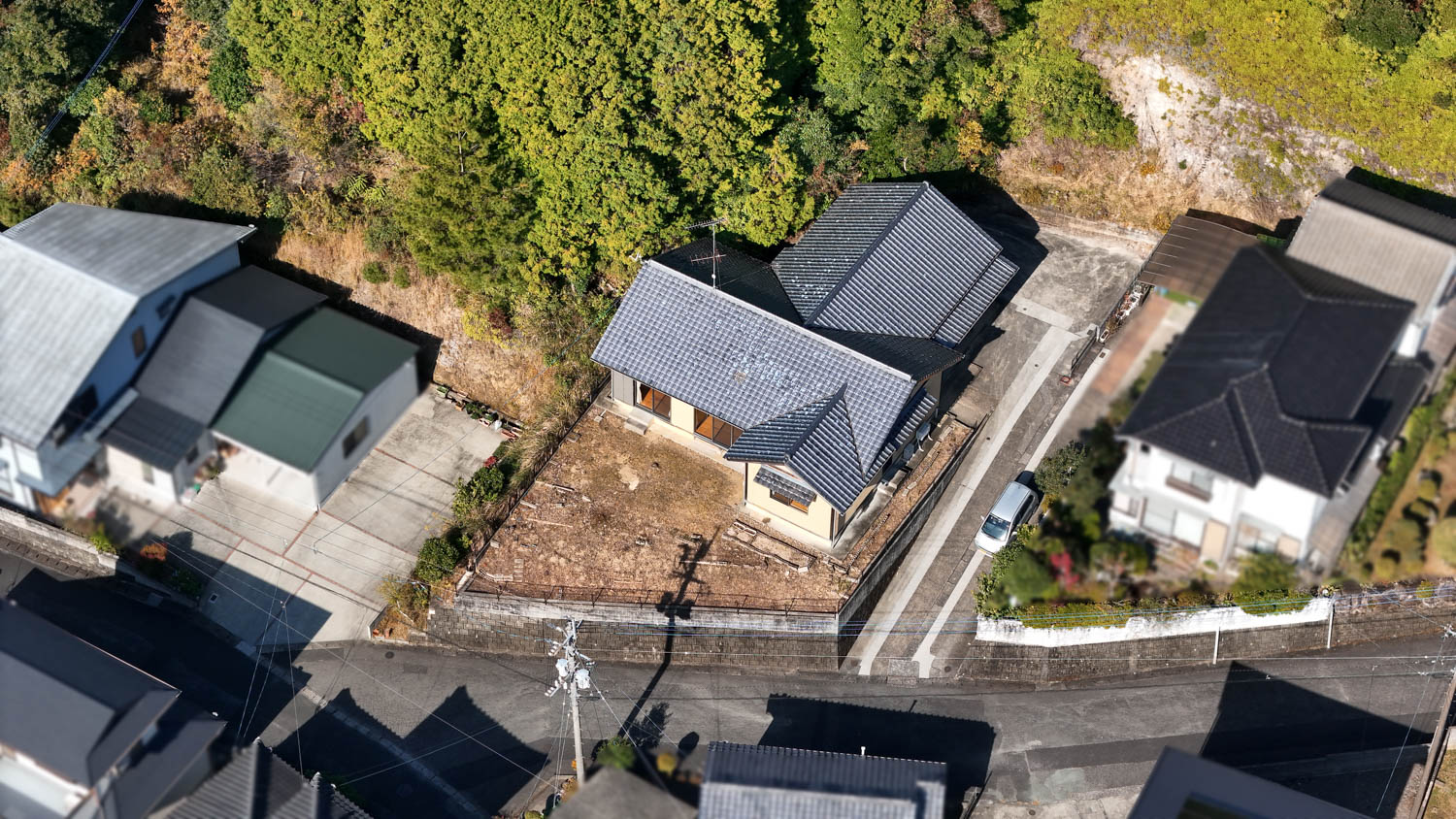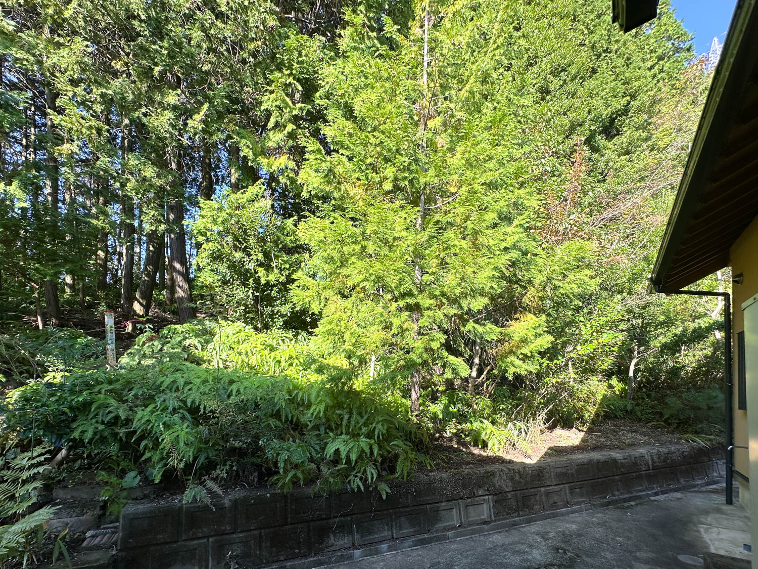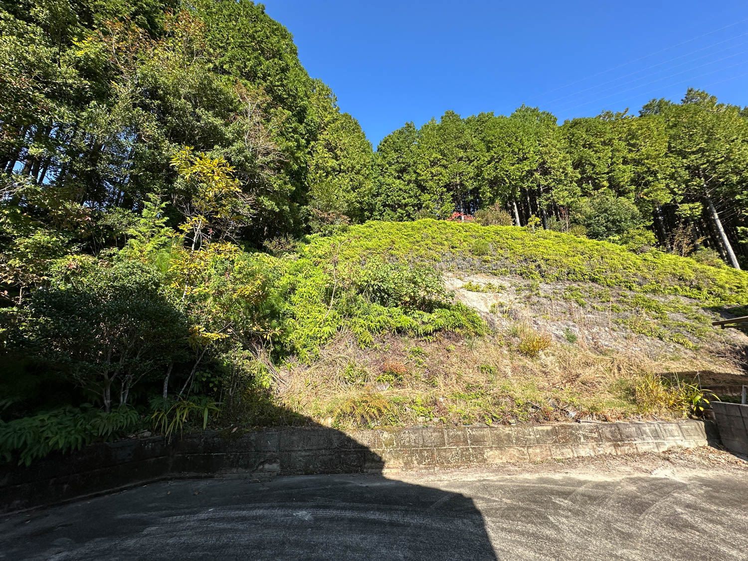 駐車場側の山林には大きな木なども生えていないため、すっきりと開けた印象でした。