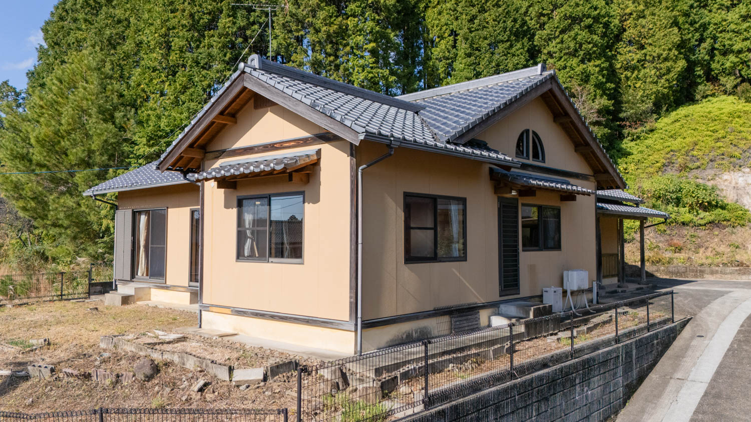 建物は道路よりも3mほど高い場所に建っているため、道路からの目線もそこまで気になりません。