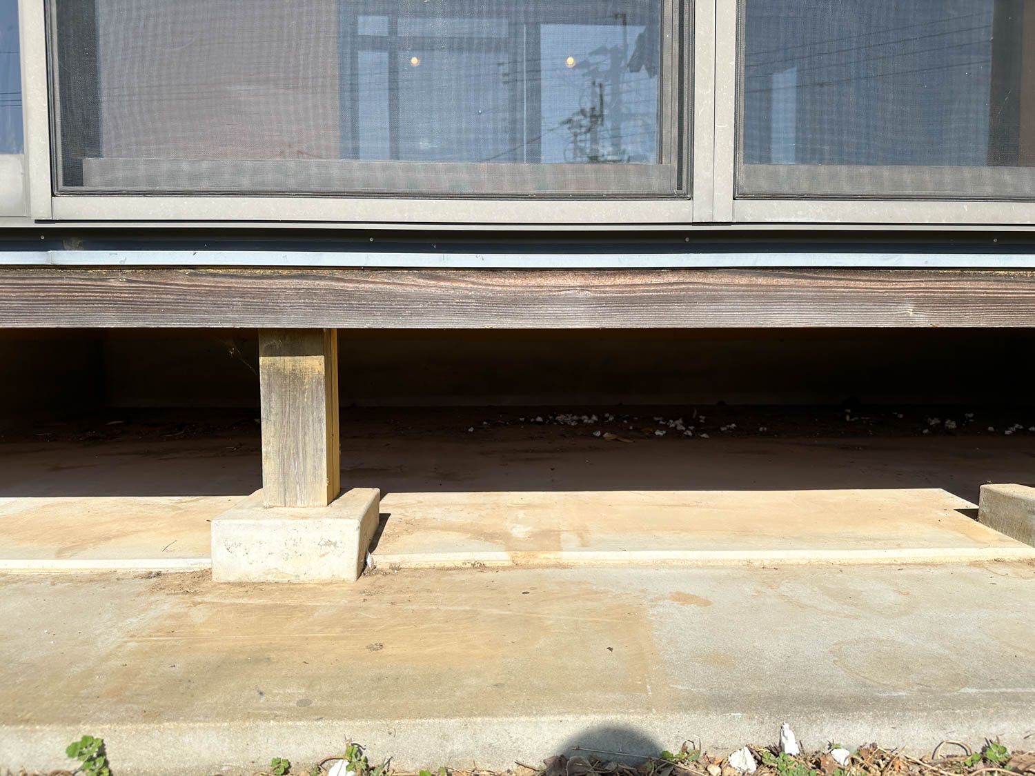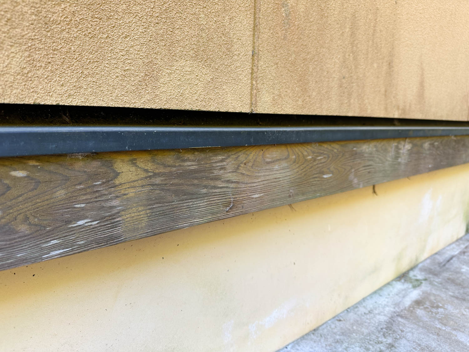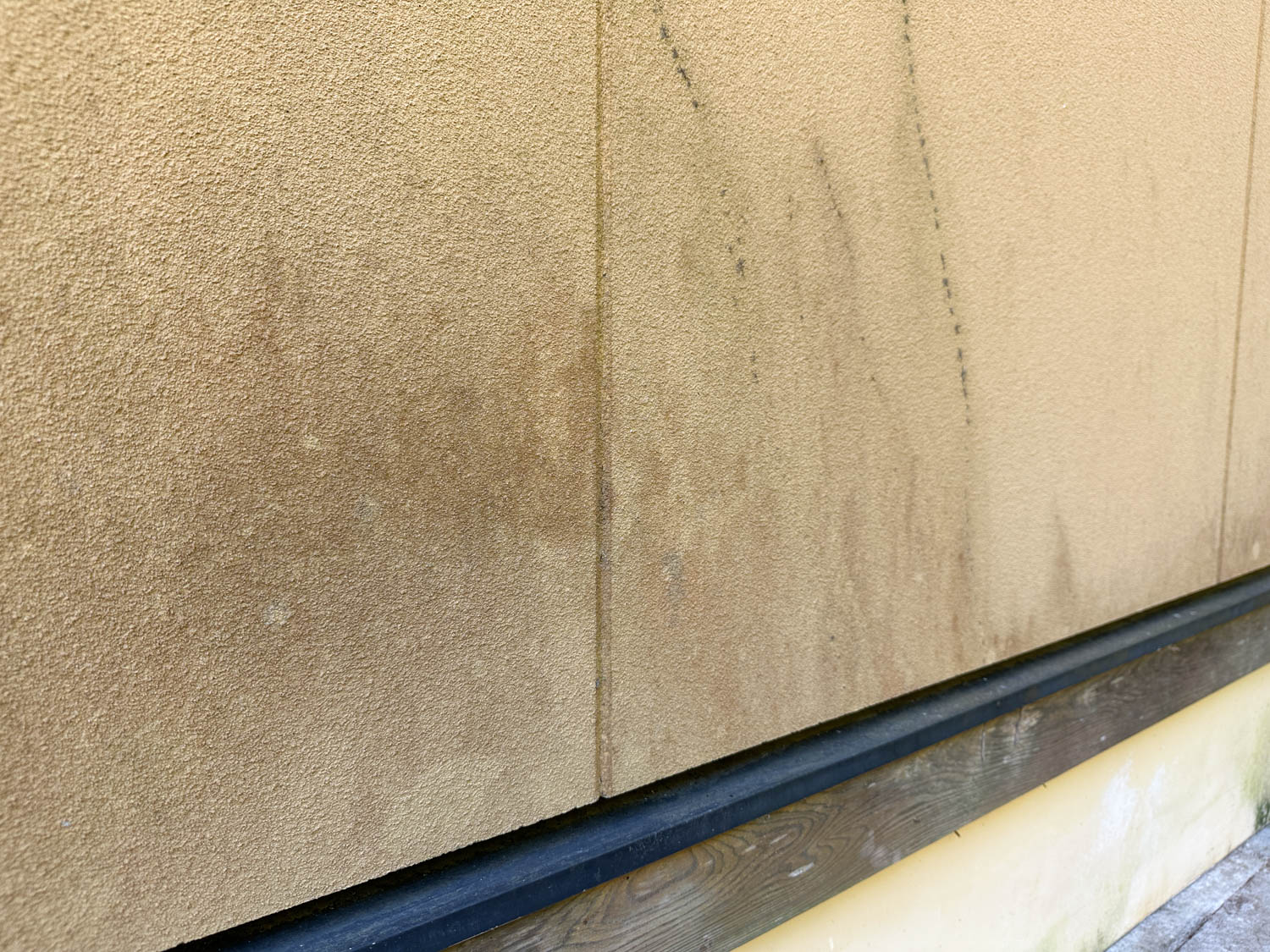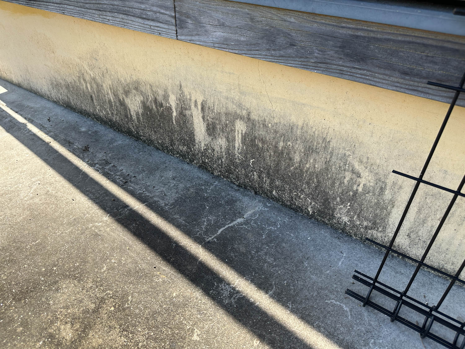 外壁の下側や水切り下の木材には黒ずみなどが見られました。