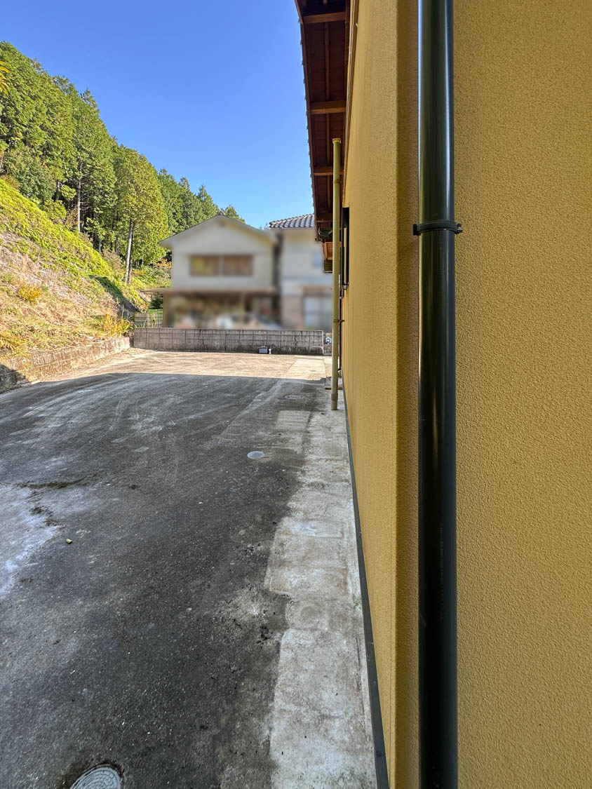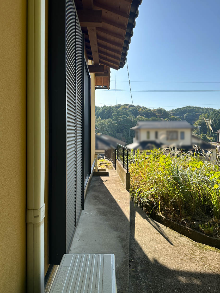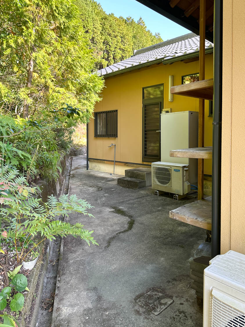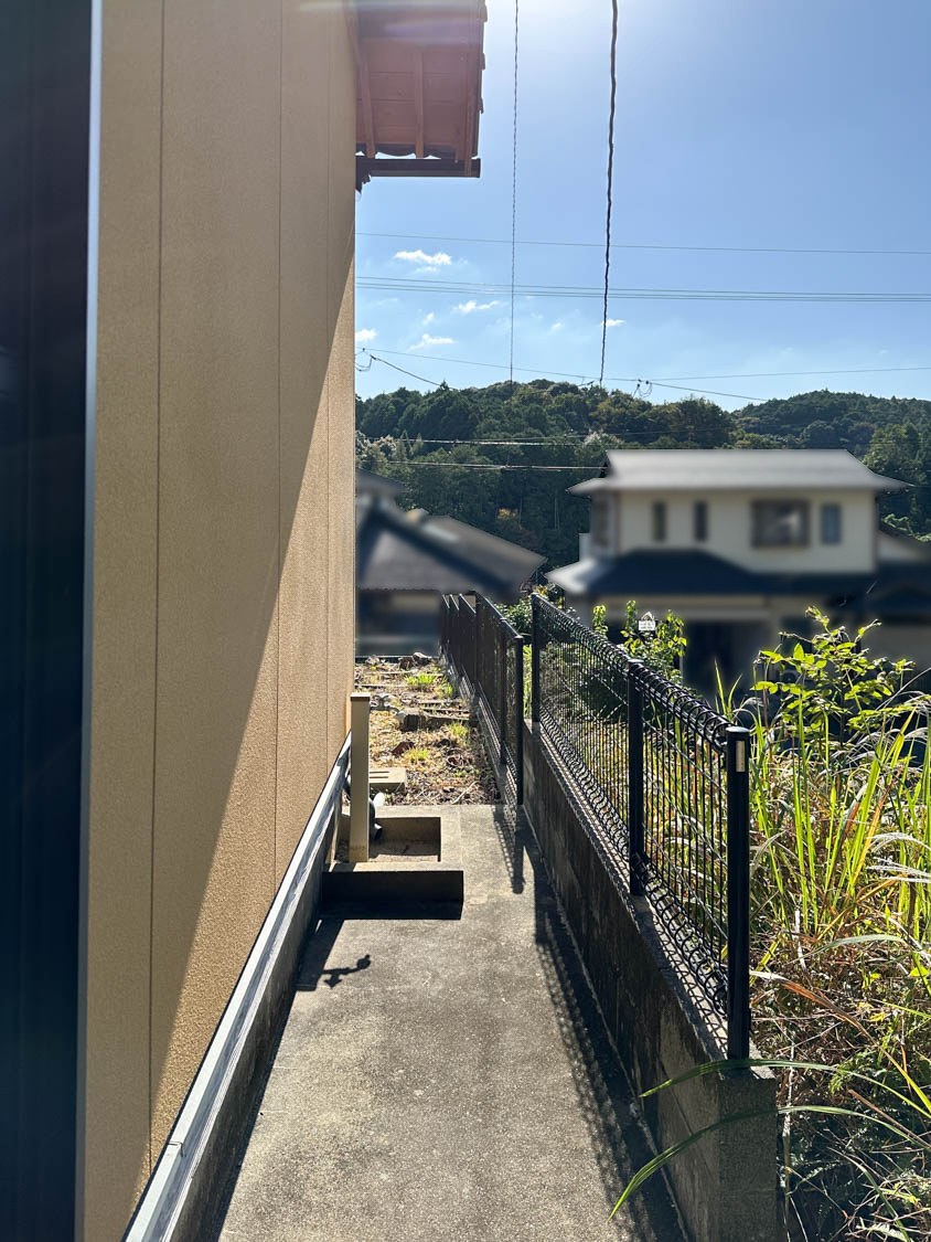 こちら側も通路になっていて、建物周りをぐるっと回れるようになっていました。キッチンからの勝手口も設置されています。