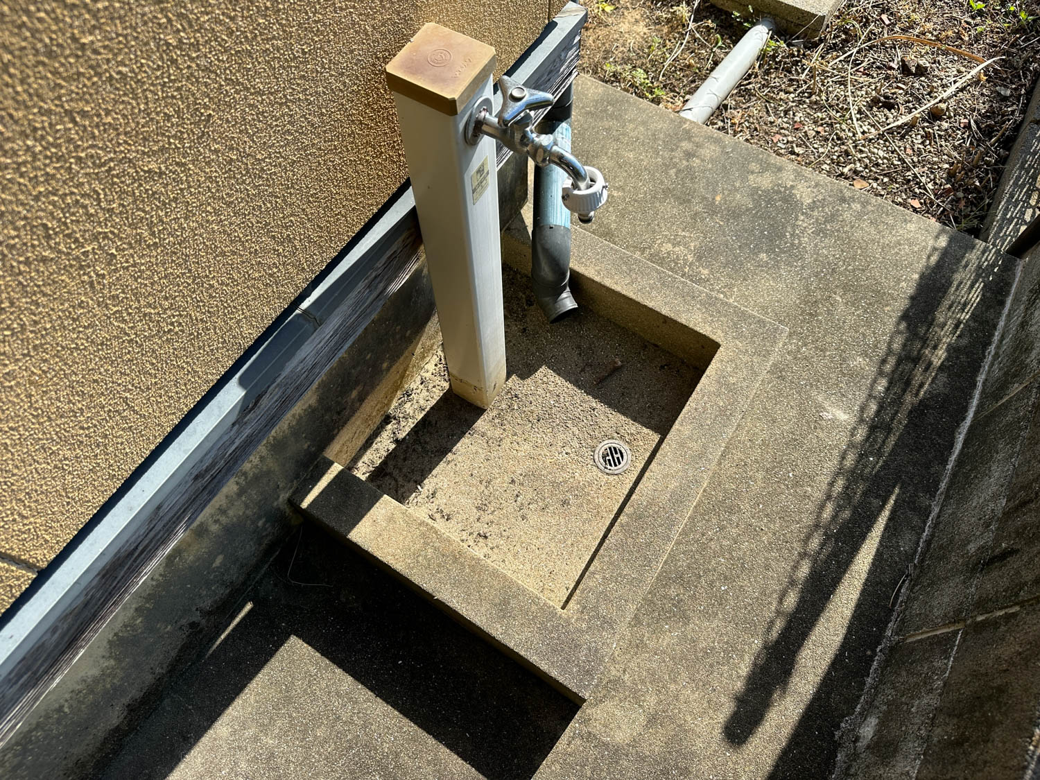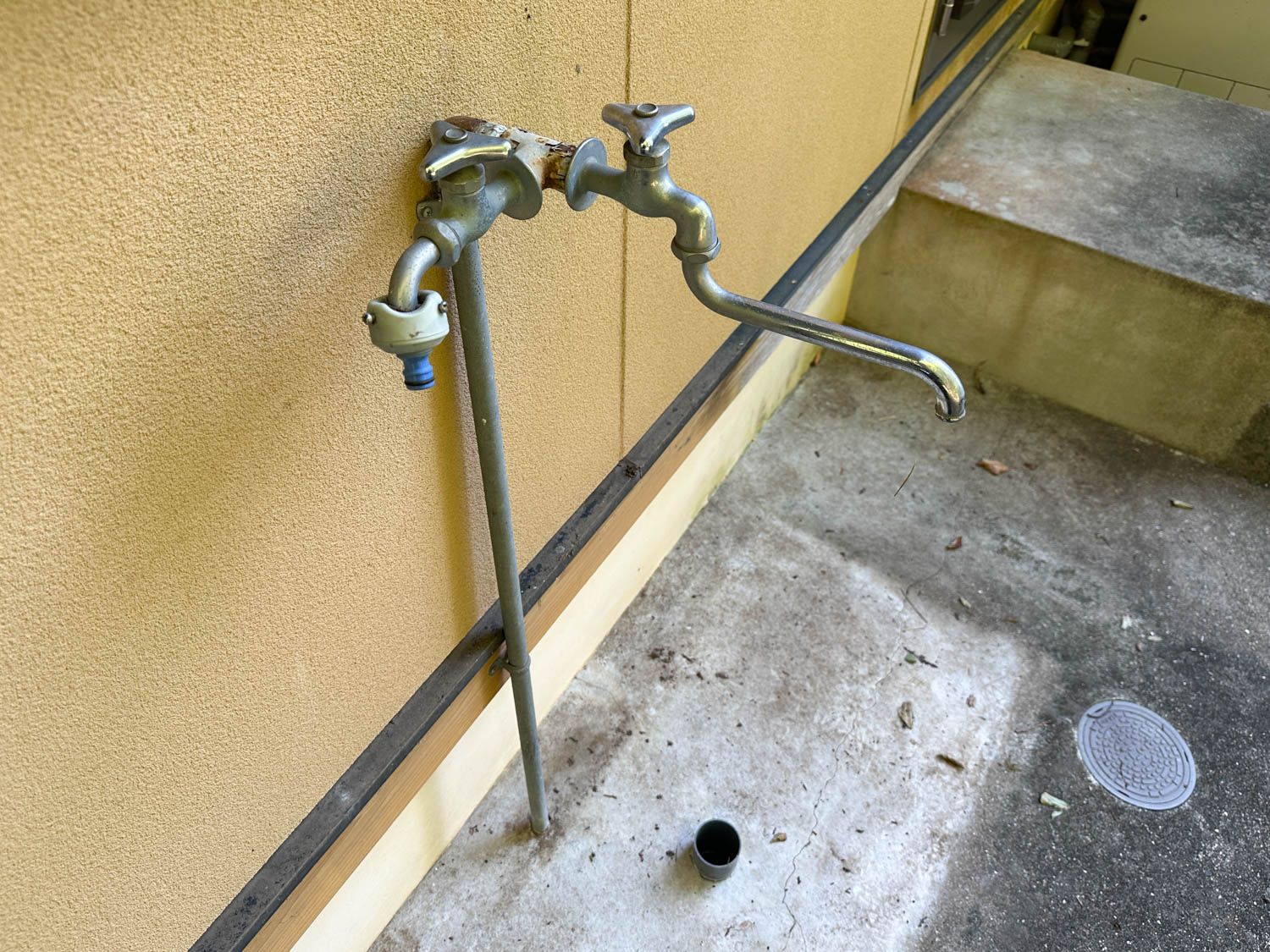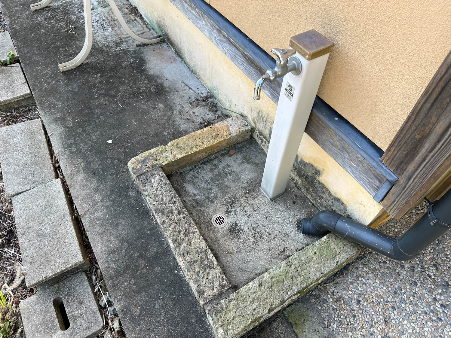 勝手口の側には、屋外水栓も設置されていました。