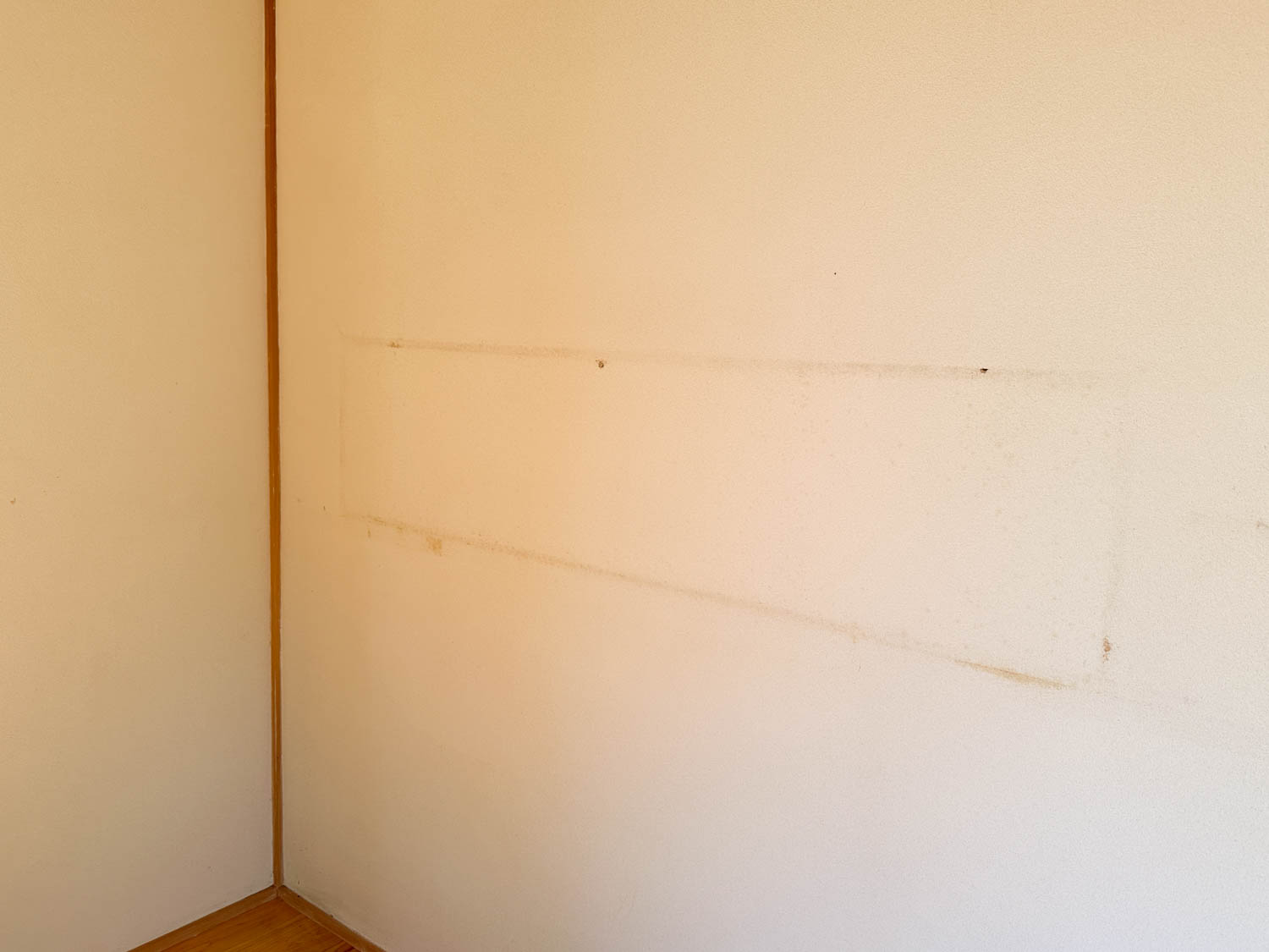 壁には家具の跡のようなものがあります。サッシ付近の床板も少し日焼けしているようでした。