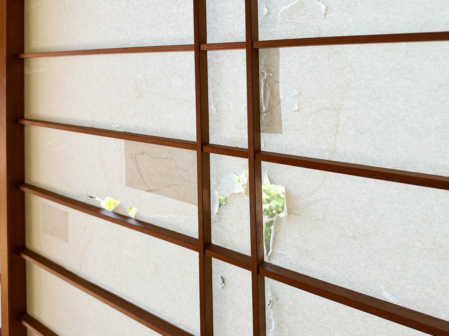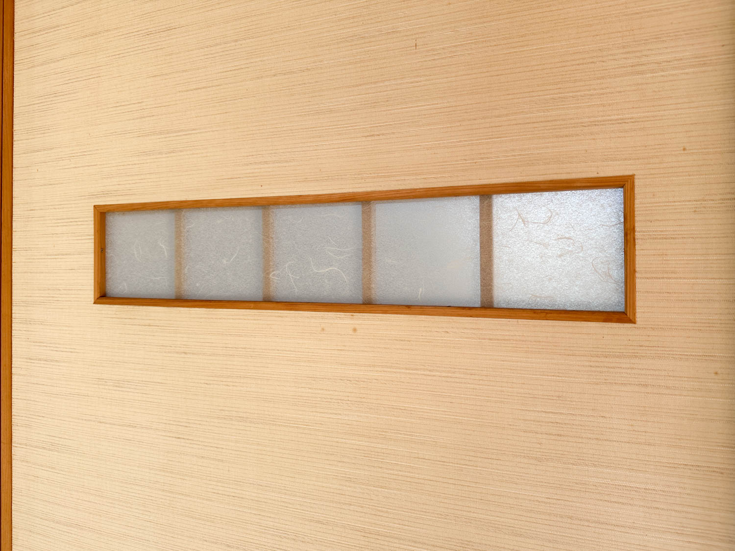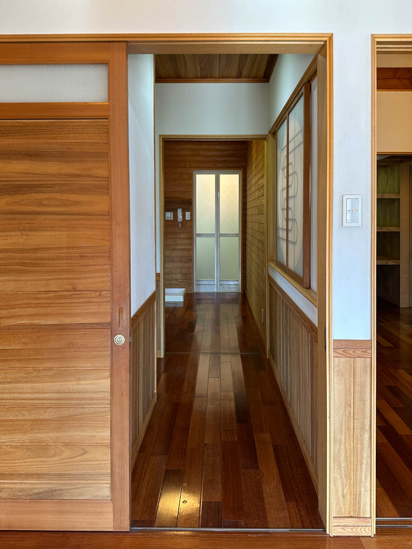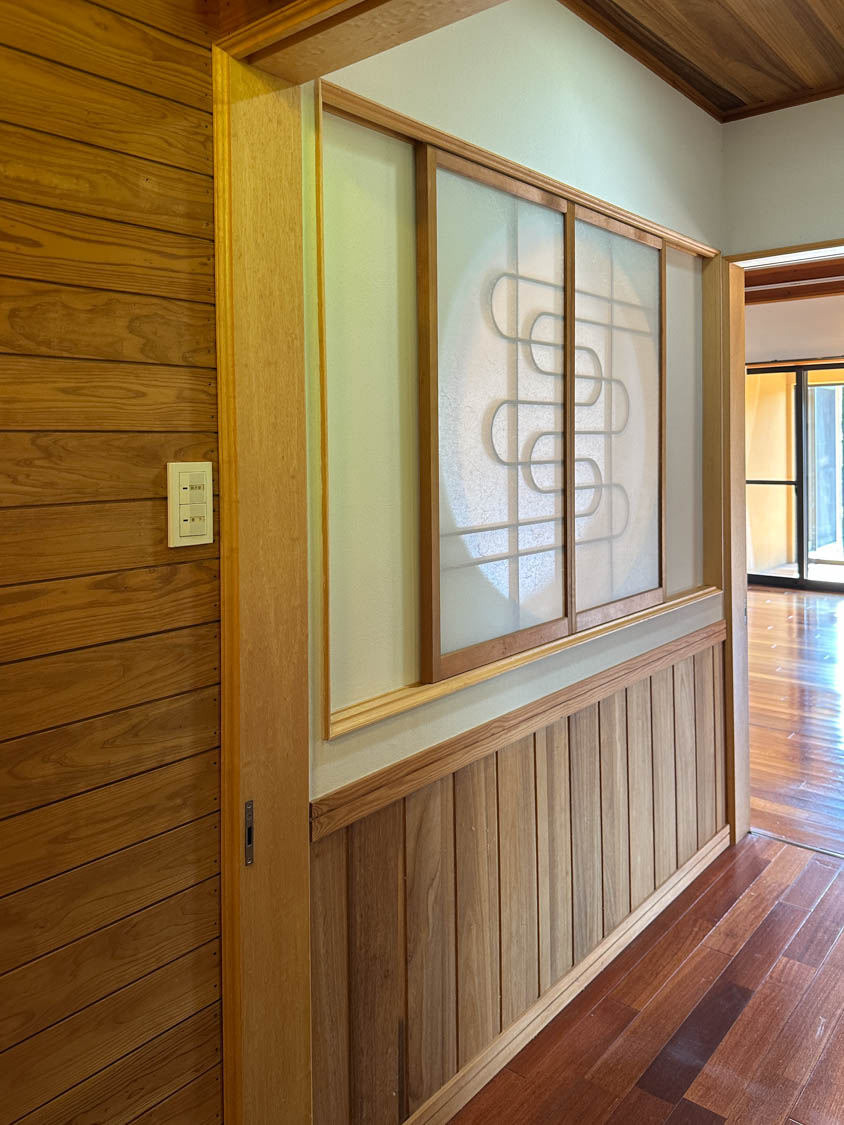 玄関ホールの障子を裏から見た様子。洗面、脱衣室からリビングまで一直線に見通すことができます。