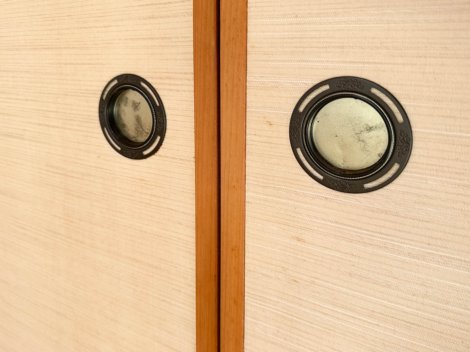 襖は可愛らしい小窓付き。取っ手や襖には、多少キズやシミがありました。