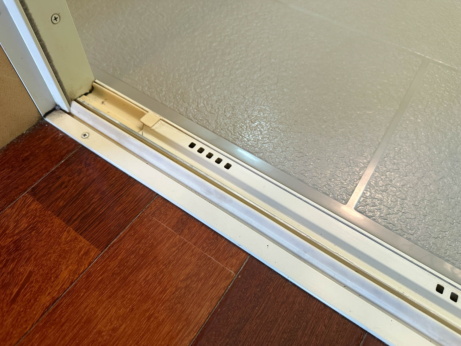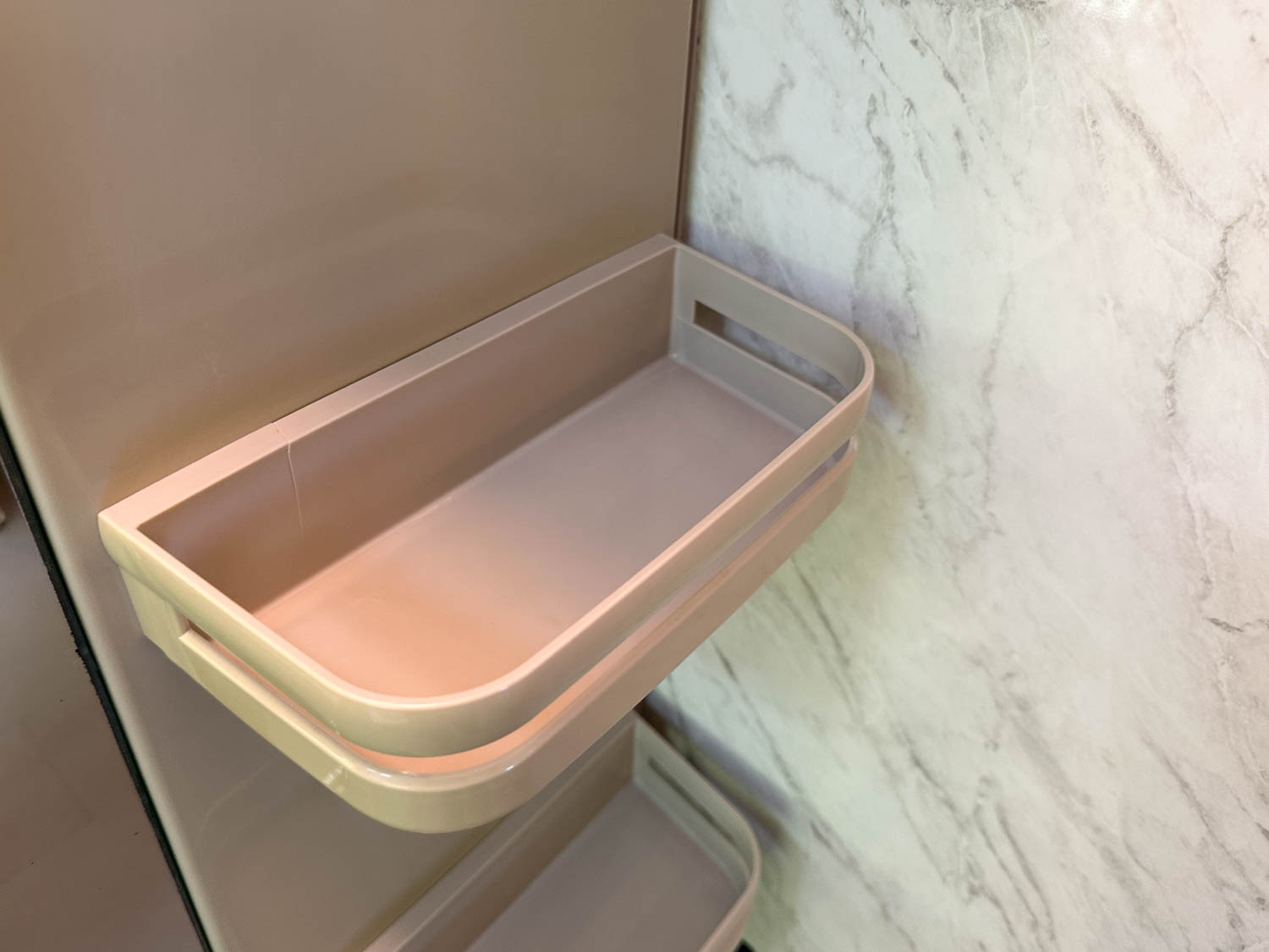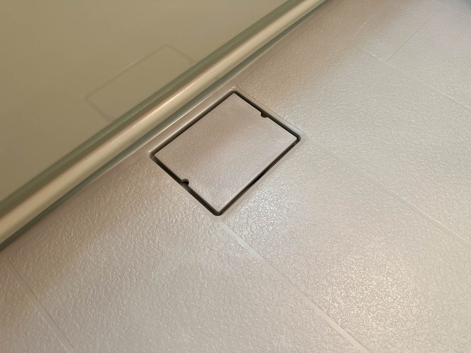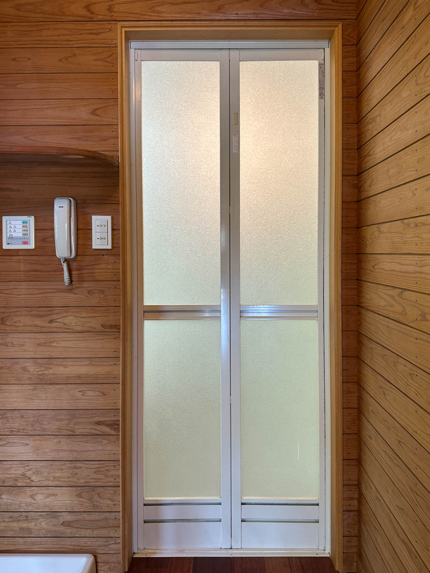 収納ラックやタオル掛け、折戸下の溝なども、多少使用感はありましたが、全体的に丁寧に使用されていた様子が伺えます。