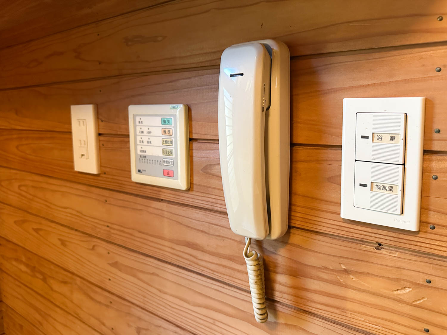 浴室側の壁にはスイッチ類がまとめて設置されていました。浴室乾燥機も付いているので、雨の日のお洗濯もお任せあれ。