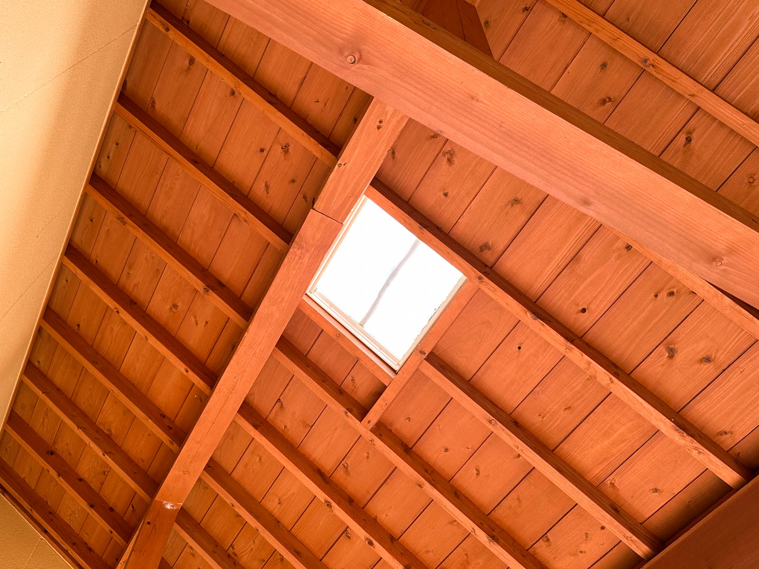板張りの勾配屋根には、天窓も設置されていました。