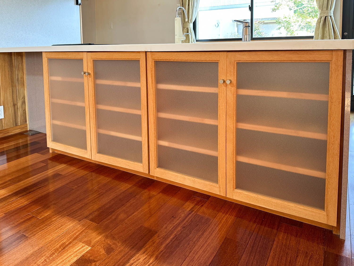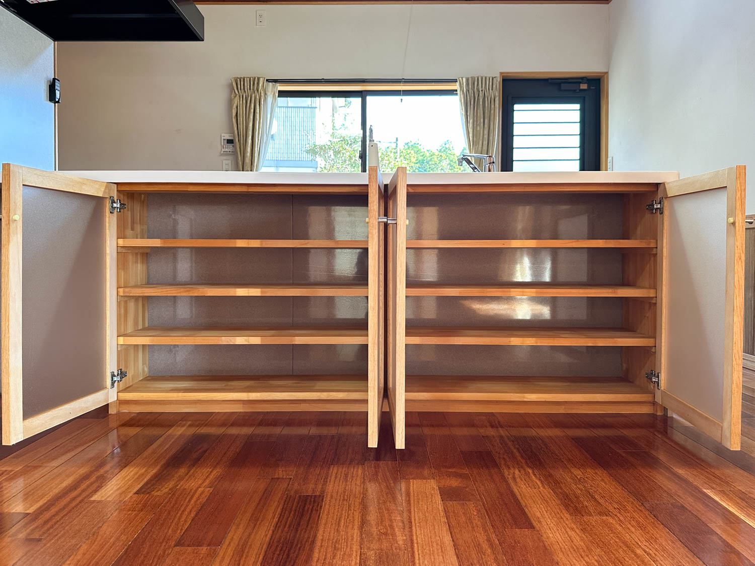 造り付けの食器棚も職人さんの手作り。収納量もたっぷりです。
