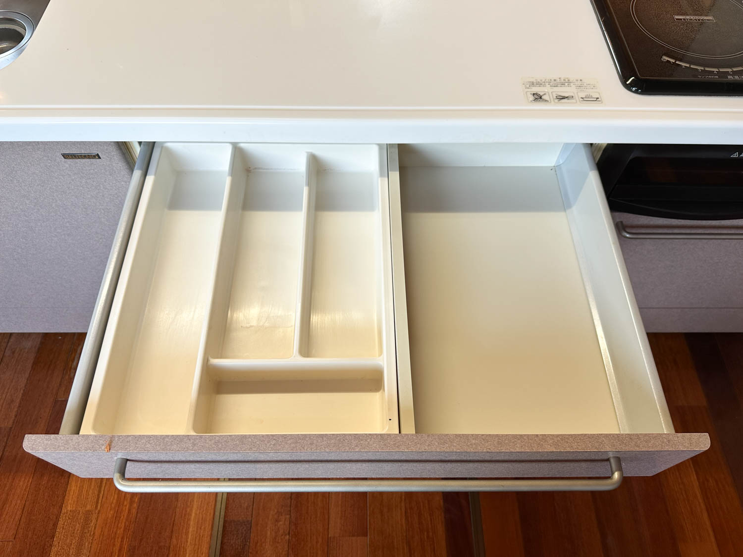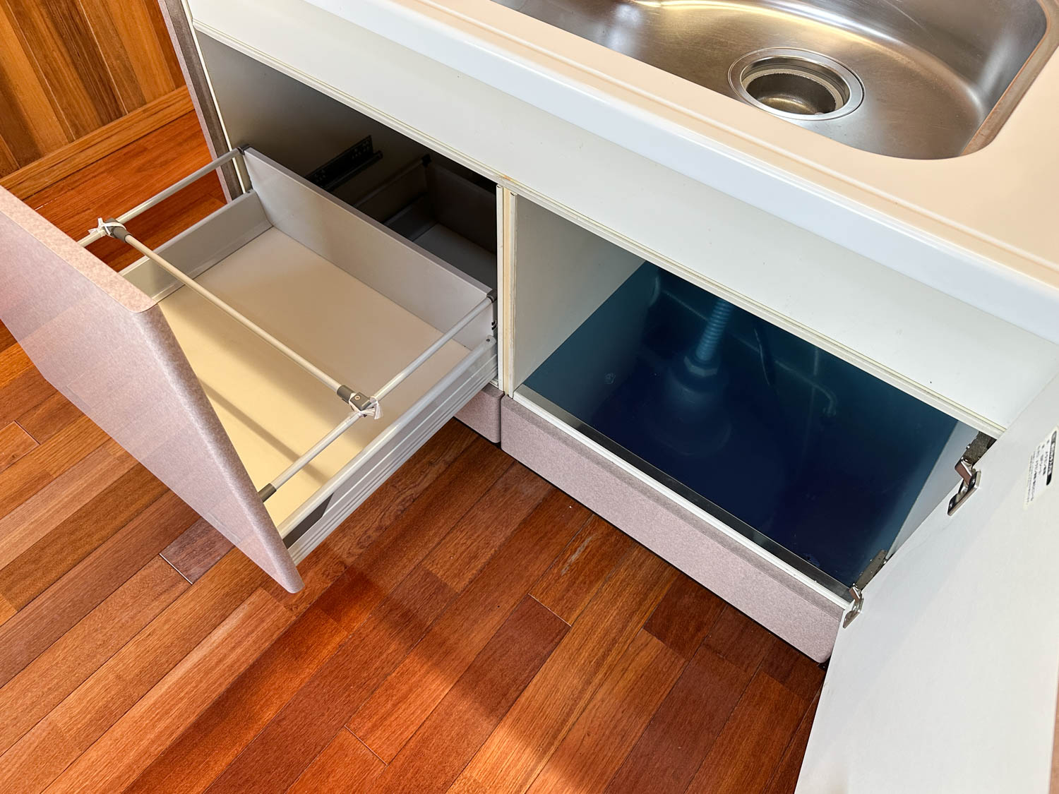 キッチン下の収納量もバッチリ。多少使用感はありますが、きれいに使われていました。
