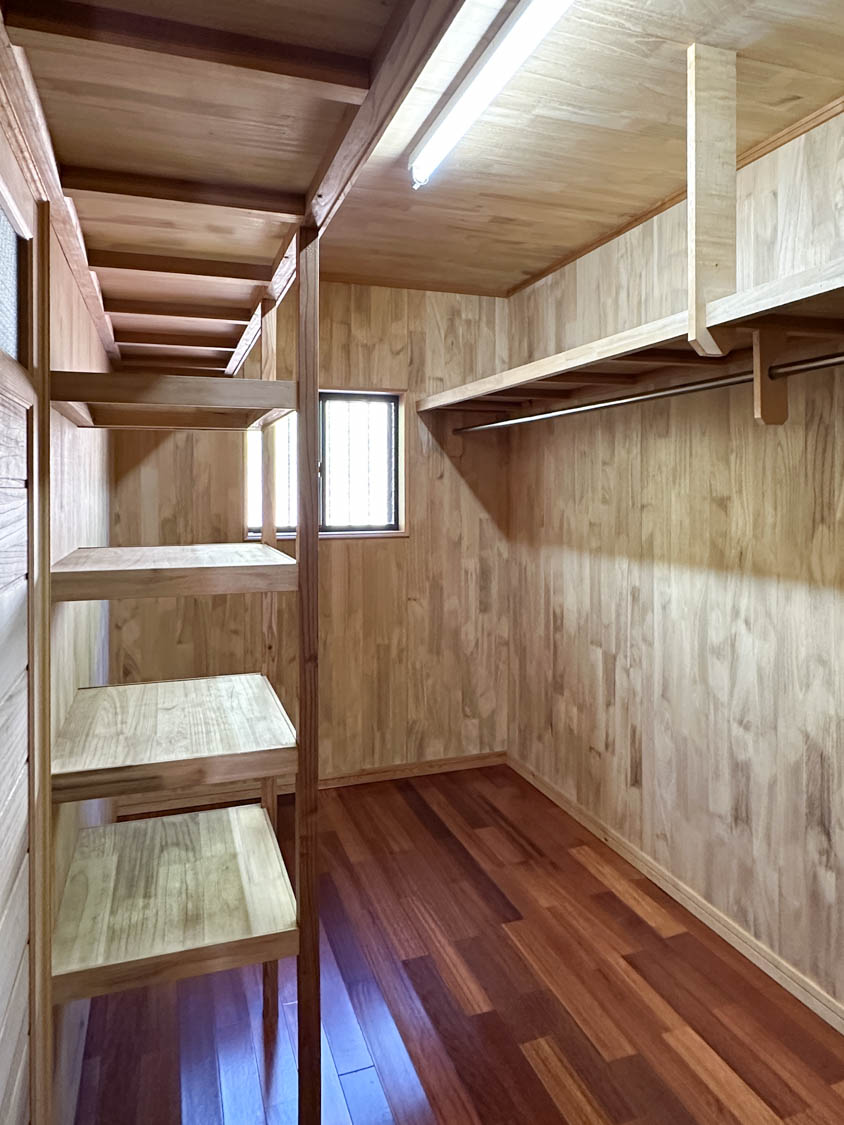 納戸の隣にはウォークインクローゼットが続いています。こちらも納戸と同じく、全面板張りの空間になっていました。