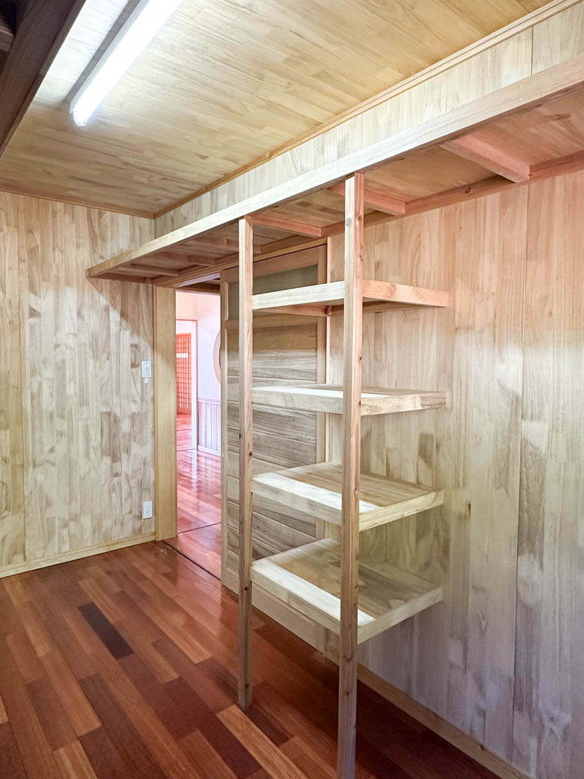 作り付けの棚も設置されています。傷みも多いので取り外しても良いかも。