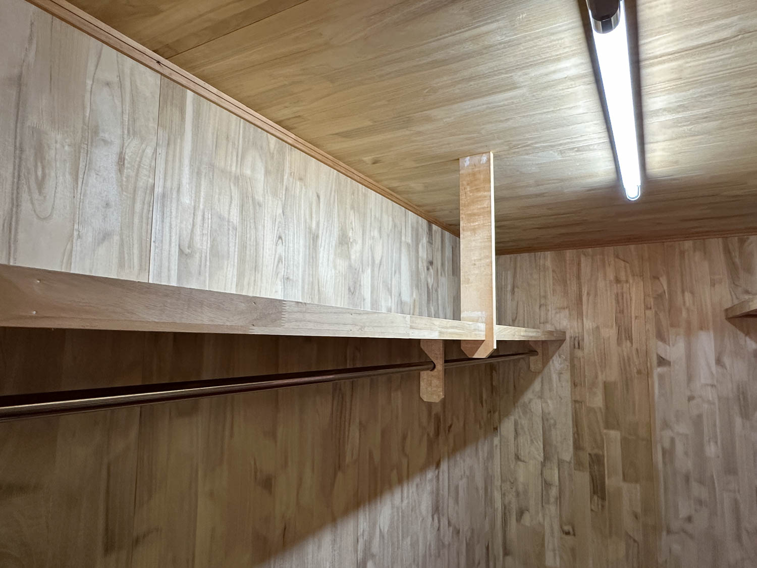 こちらには枕棚付きのハンガーパイプが設置されていました。長めのコートなども問題なく収納できそうですね。