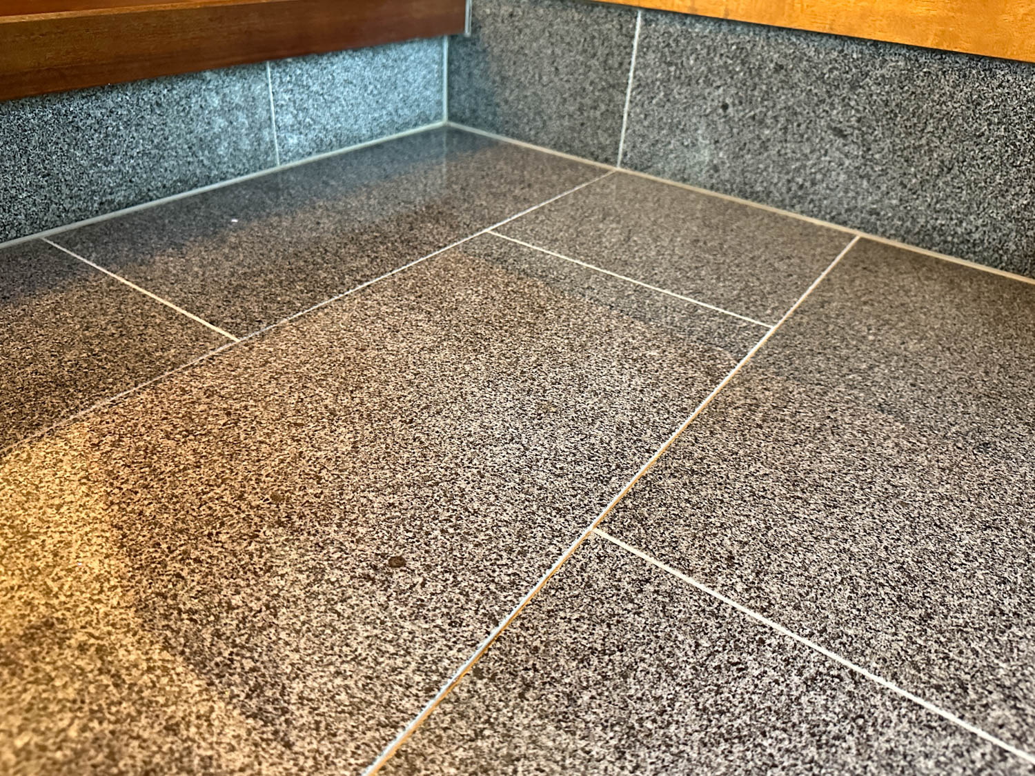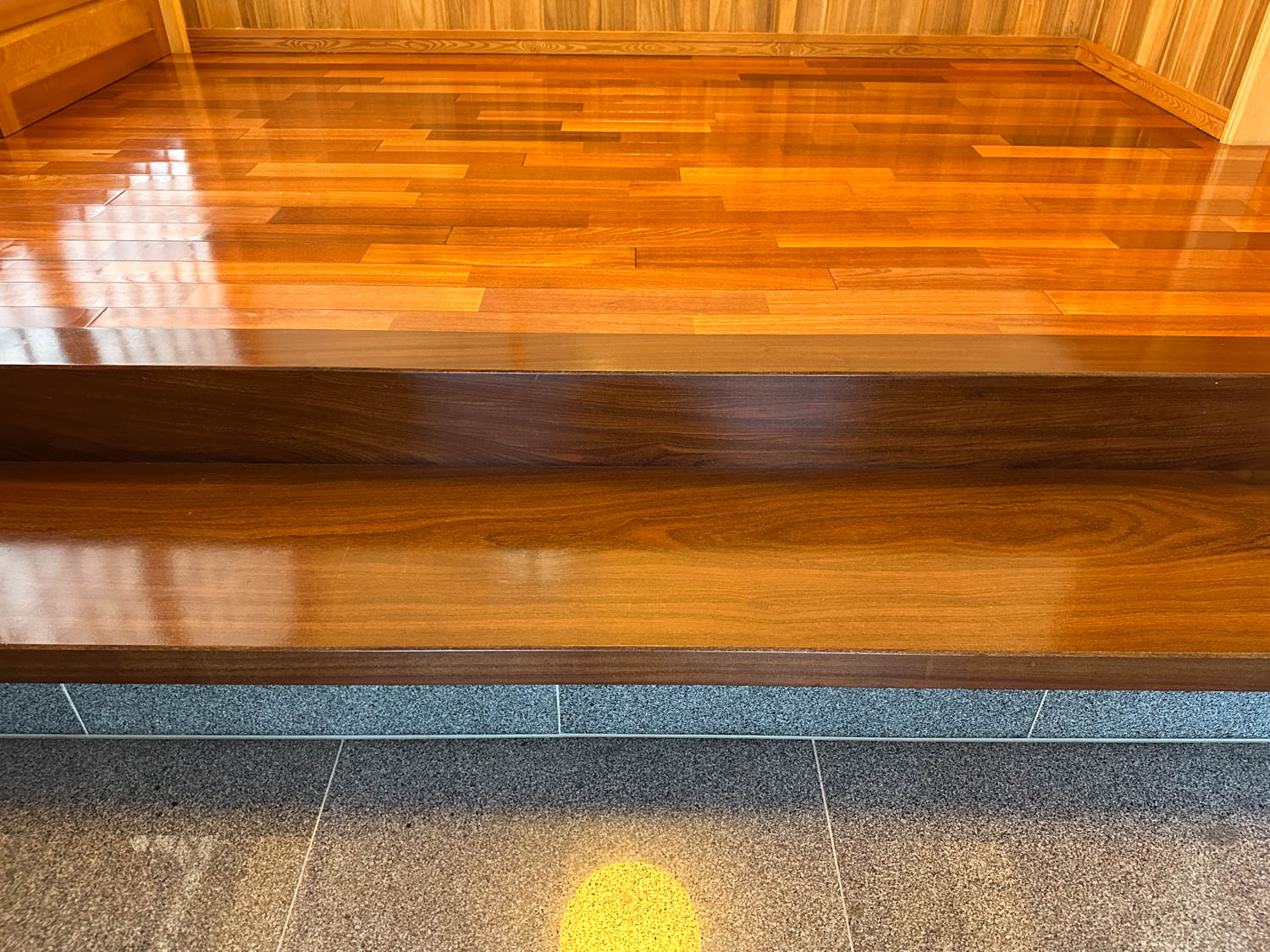 光沢のある床材や石材が使われていて、より一層高級感のある空間を演出していました。