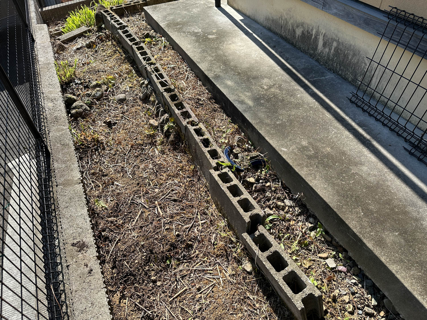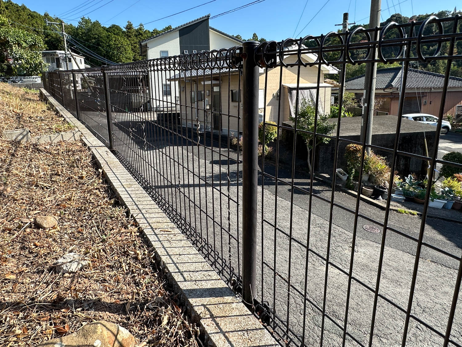 お隣との境には、ブロックとメッシュフェンスが施工されていました。