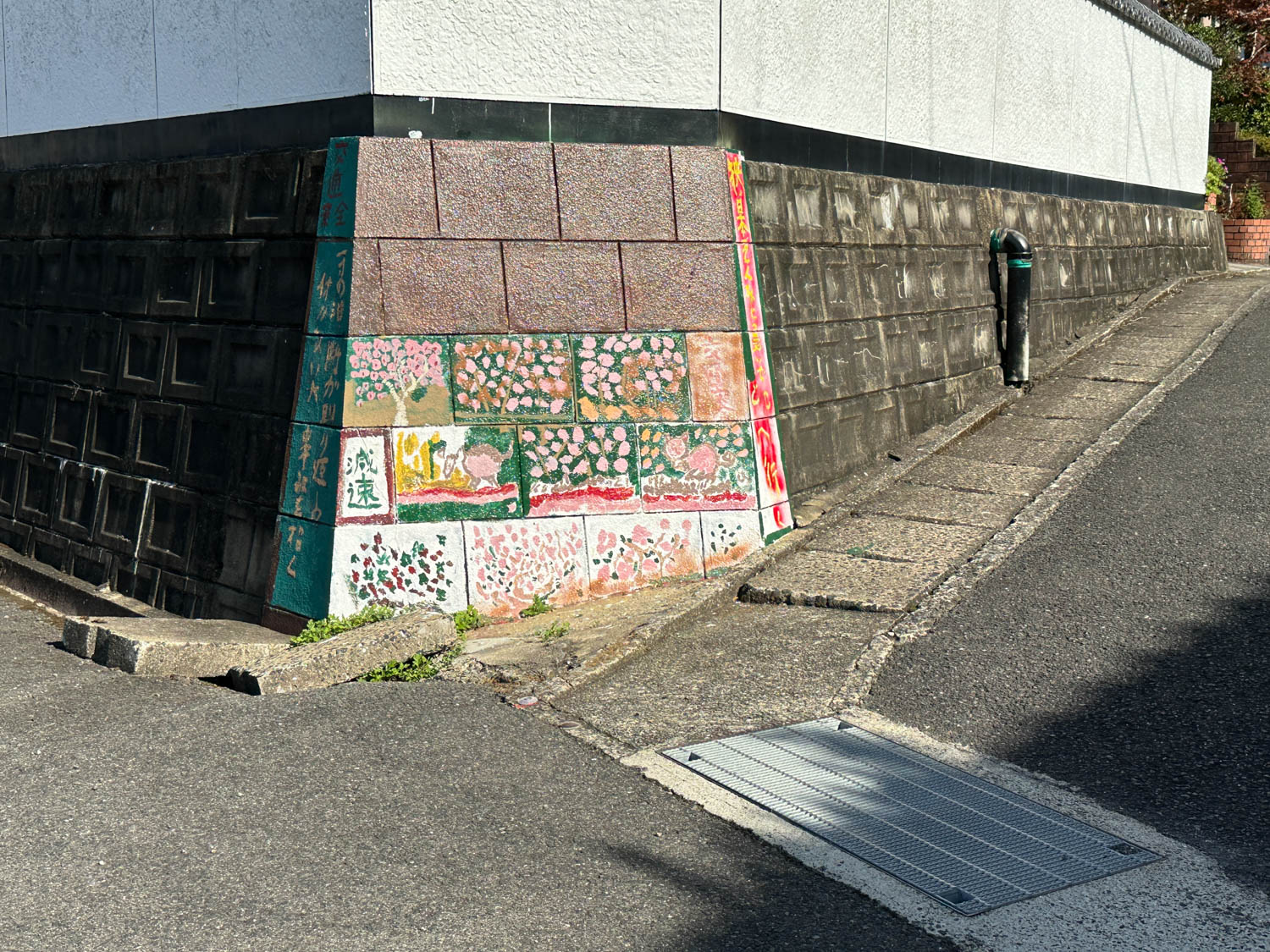 2つ目のY字路にさしかかるので、可愛らしい壁画を横目に右側の道に進みます。