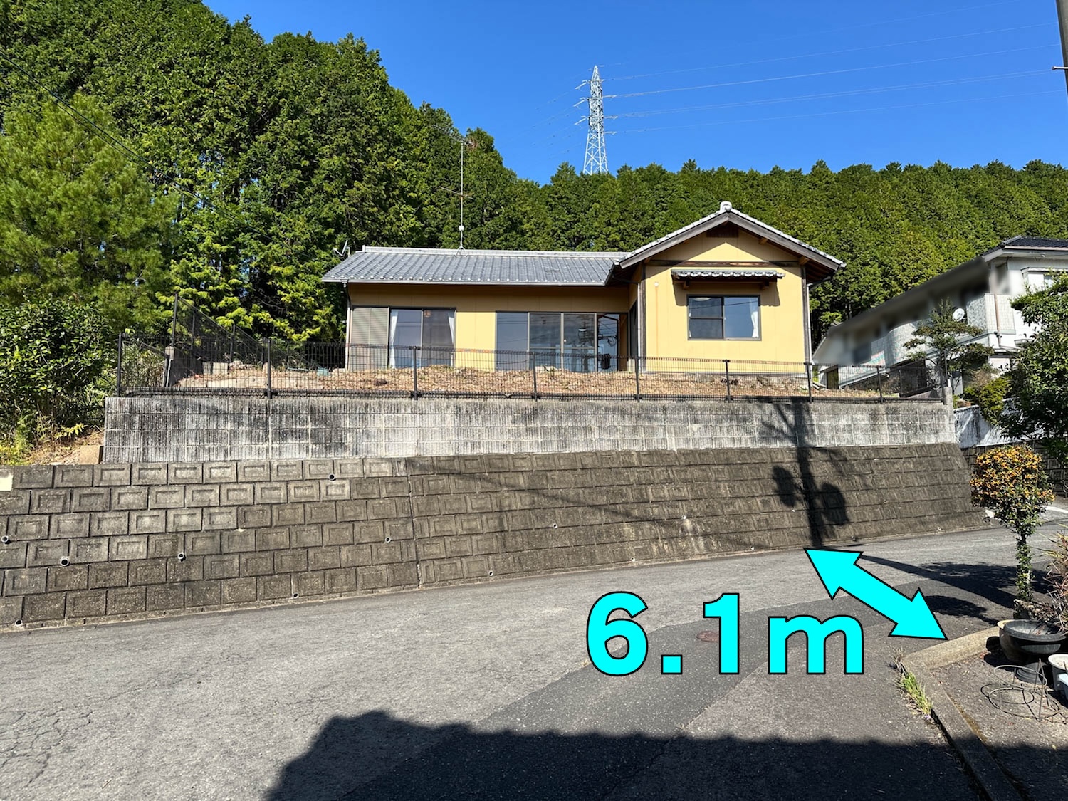 前面道路の道幅は6.1mほどあり、敷地への出入りもスムーズに行うことができます。