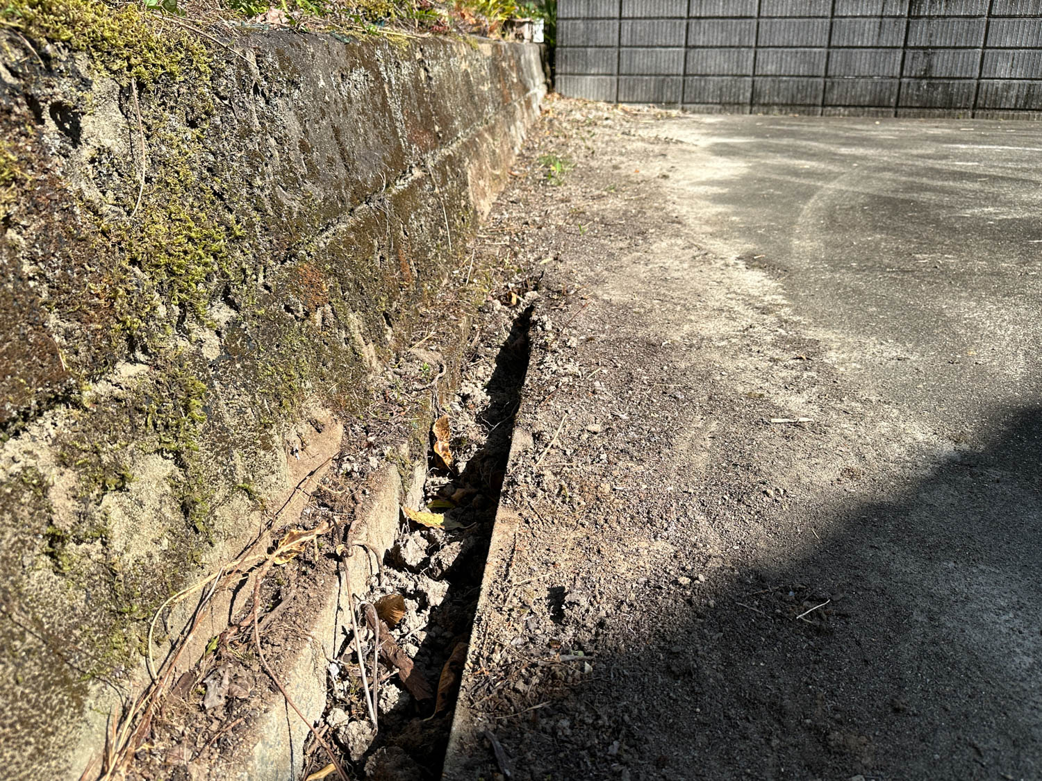 ブロックと建物の間は、コンクリート舗装の細い通路になっていました。